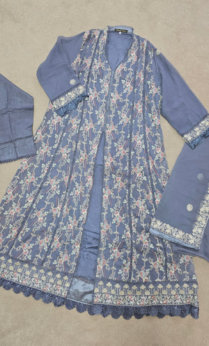 Wardah Uzair Luxury Pret Embroidered Chiffon Gown Suit