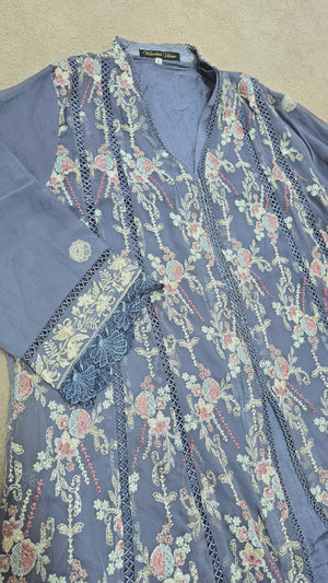 Wardah Uzair "Dil Ruba" Luxury Embroidered Chiffon Gown Suit - Saagar