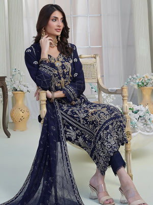Wardah Uzair "Festive Soiree" Lux Embroidered Chiffon Suit - Revel