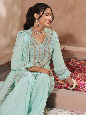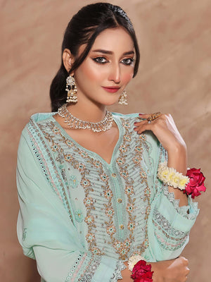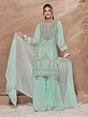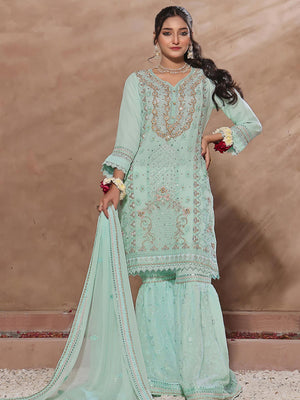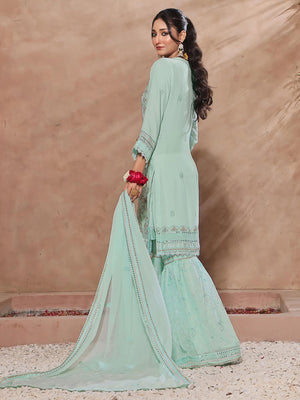 Wardah Uzair Luxury Pret Embroidered Chiffon Gharara Suit - Mint