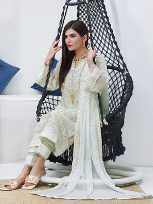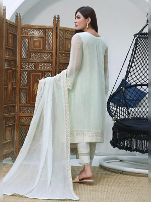 Wardah Uzair Luxury Pret Embroidered Chiffon Suit - Light Mint