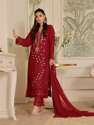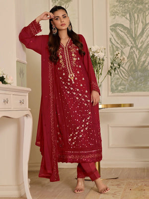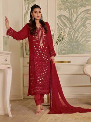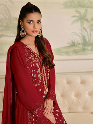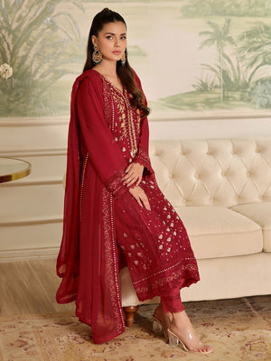 Wardah Uzair "Mirha" Luxury Embroidered Chiffon Suit - Majestic Rouge