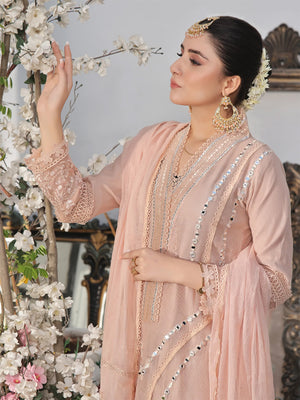 Wardah Uzair "Noori" Luxury Cotton Net Suit - Peach