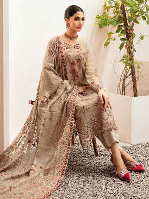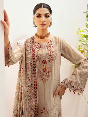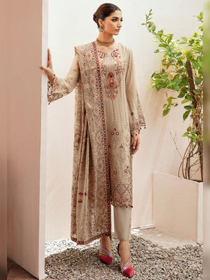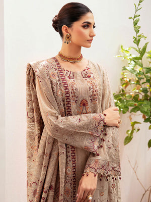 Ramsha "Kashish" Luxury Embroidered Chiffon Suit - Beige (K-206)
