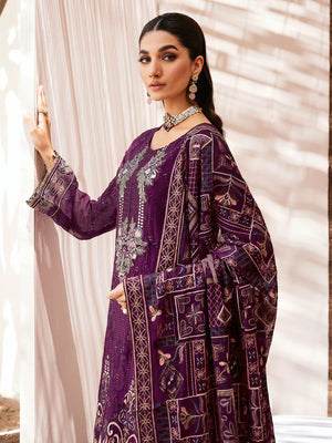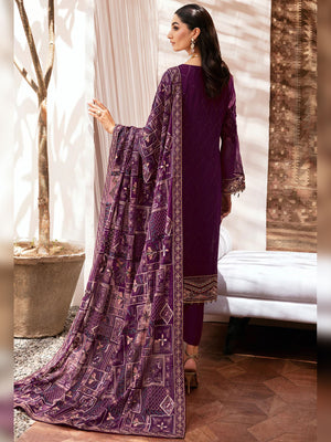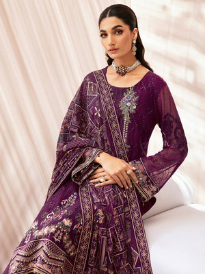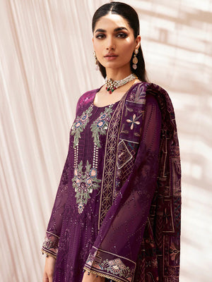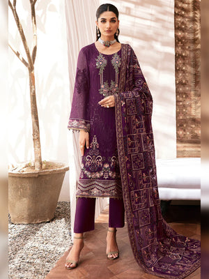 Ramsha "Kashish" Luxury Embroidered Chiffon Suit - Plum (K-201)