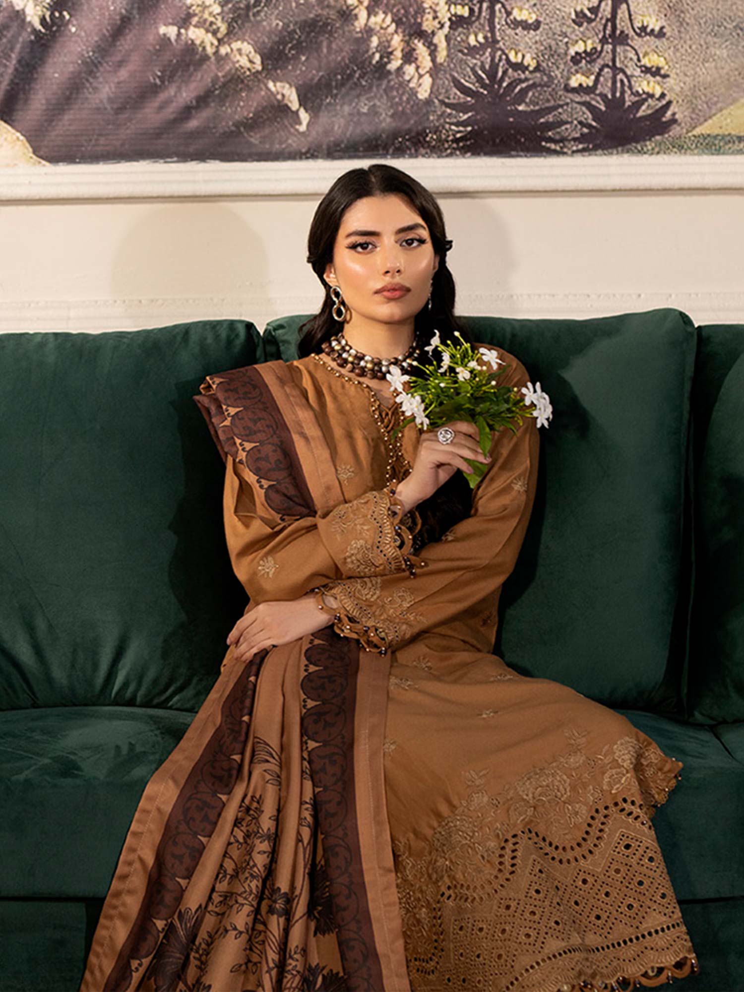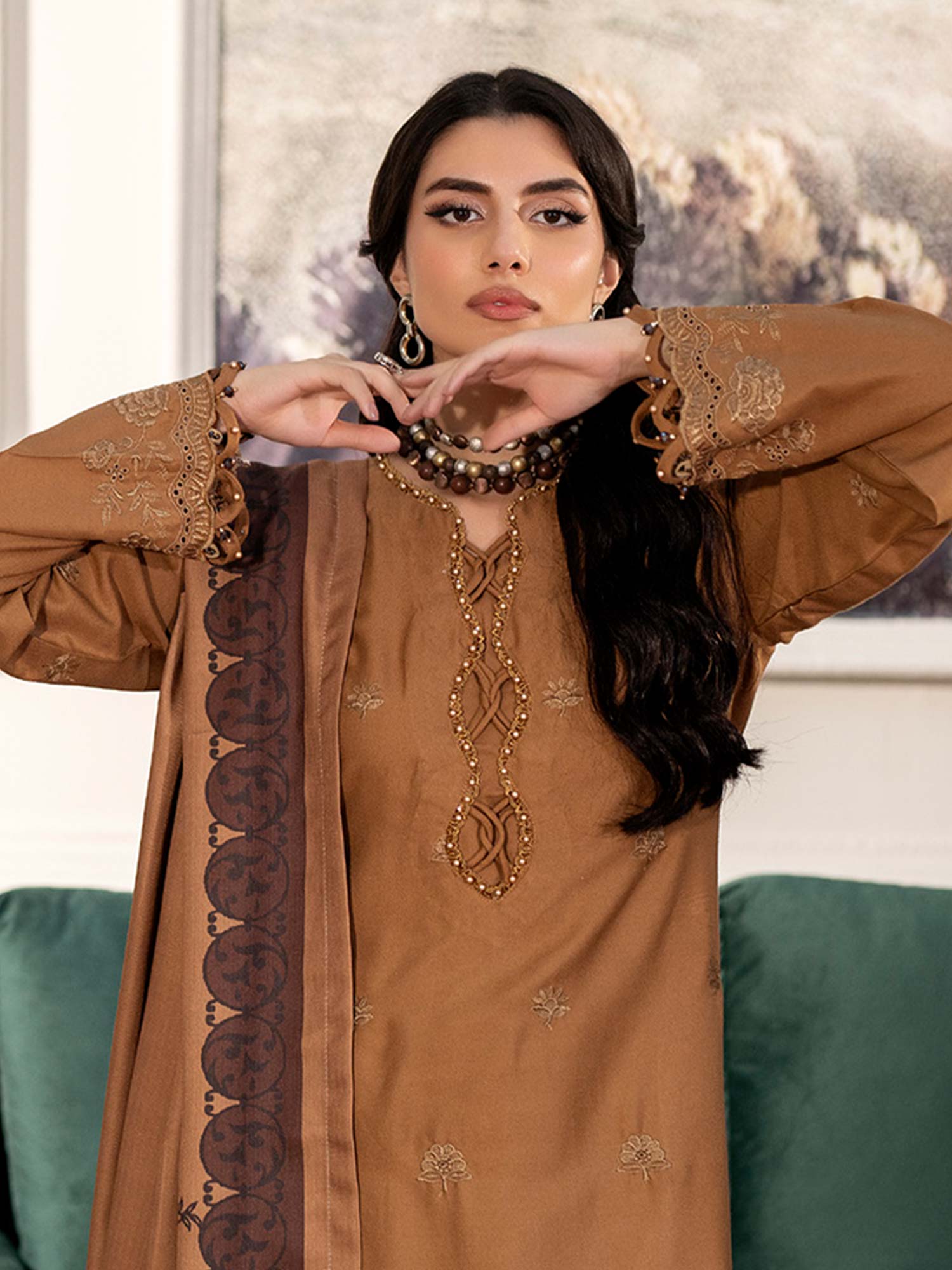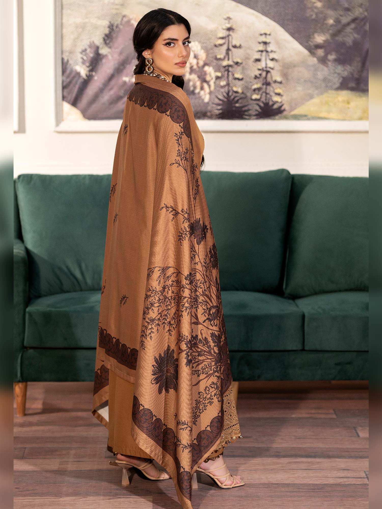 Ally's Dhanak Chikankari Camel Brown 3-Piece Suit (AL-DNK43)