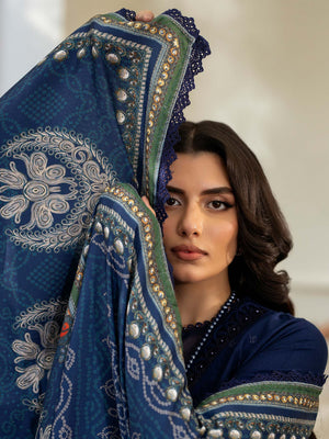 Ally's Dhanak Chikankari Navy Blue 3-Piece Suit (AL-DNK42)