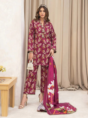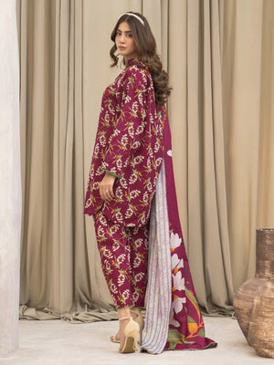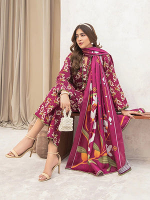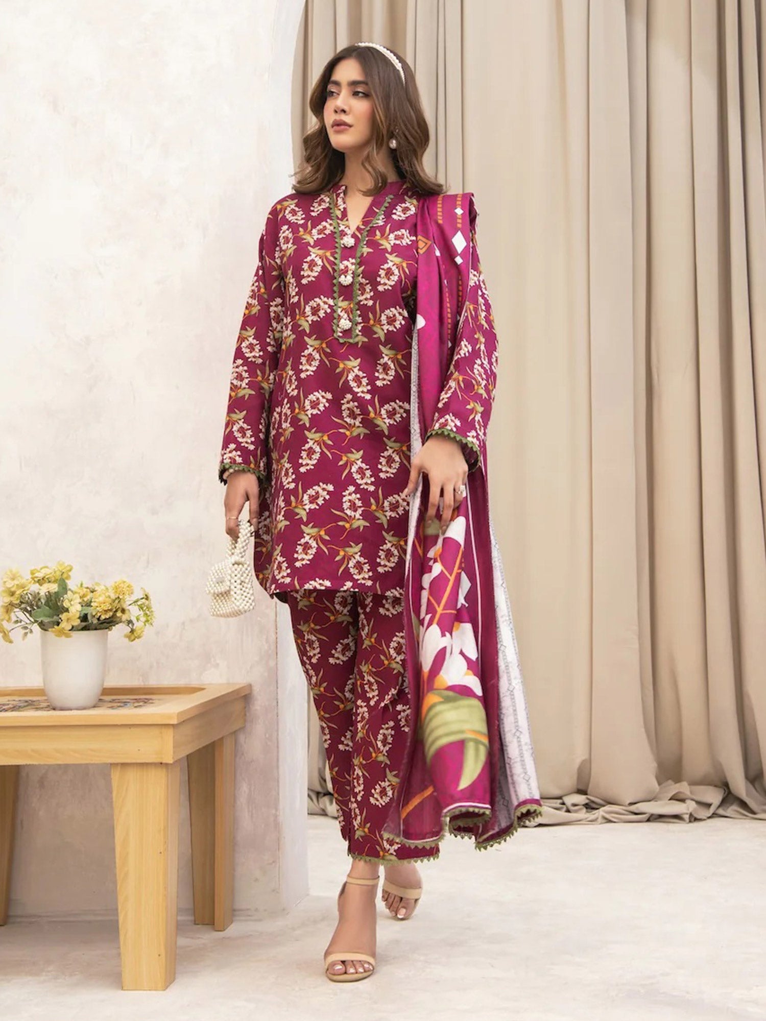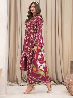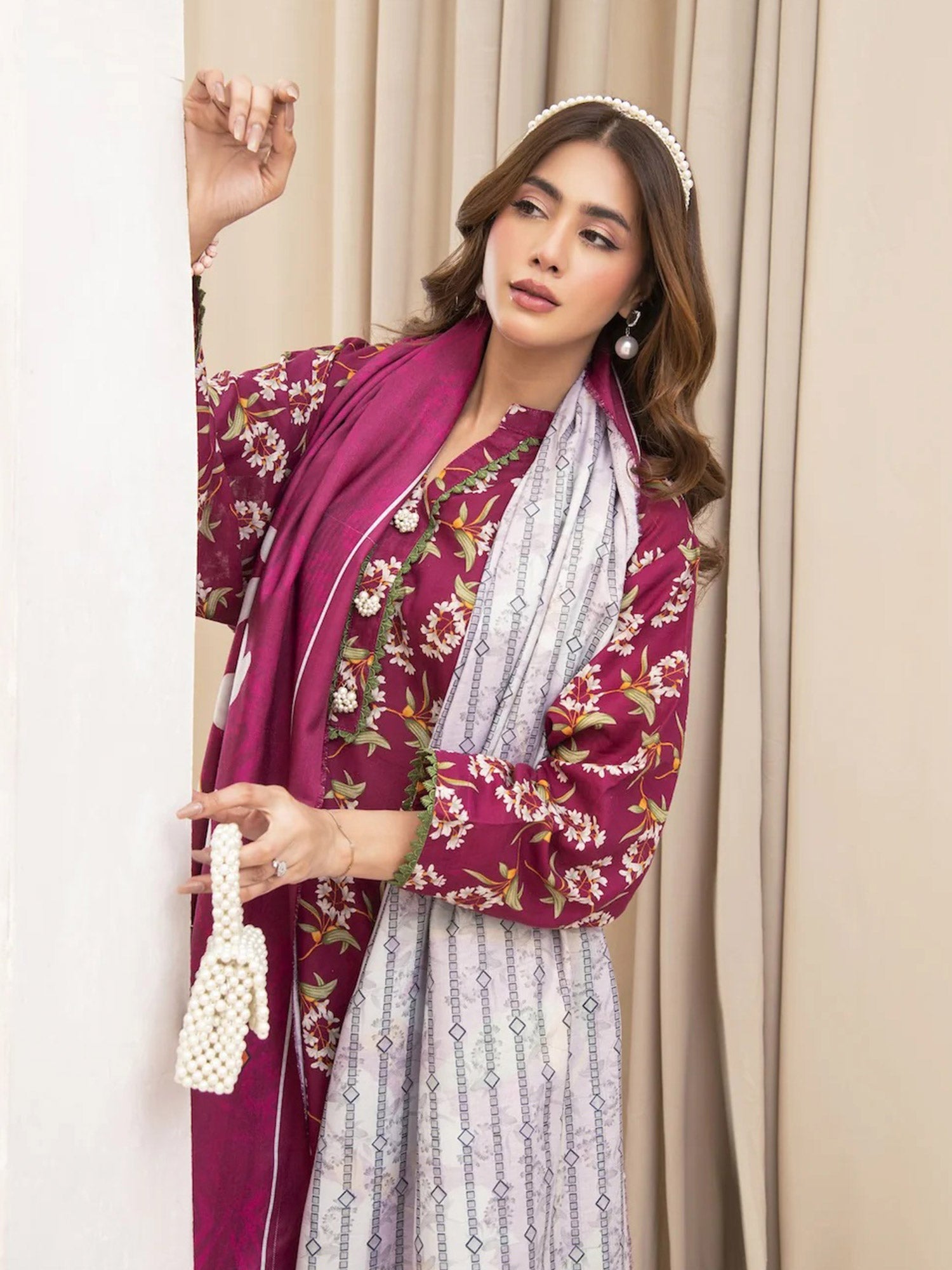 Ally's "Forbidden Flowers" Khaddar 3-Piece Suit - Dark Fuchsia