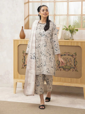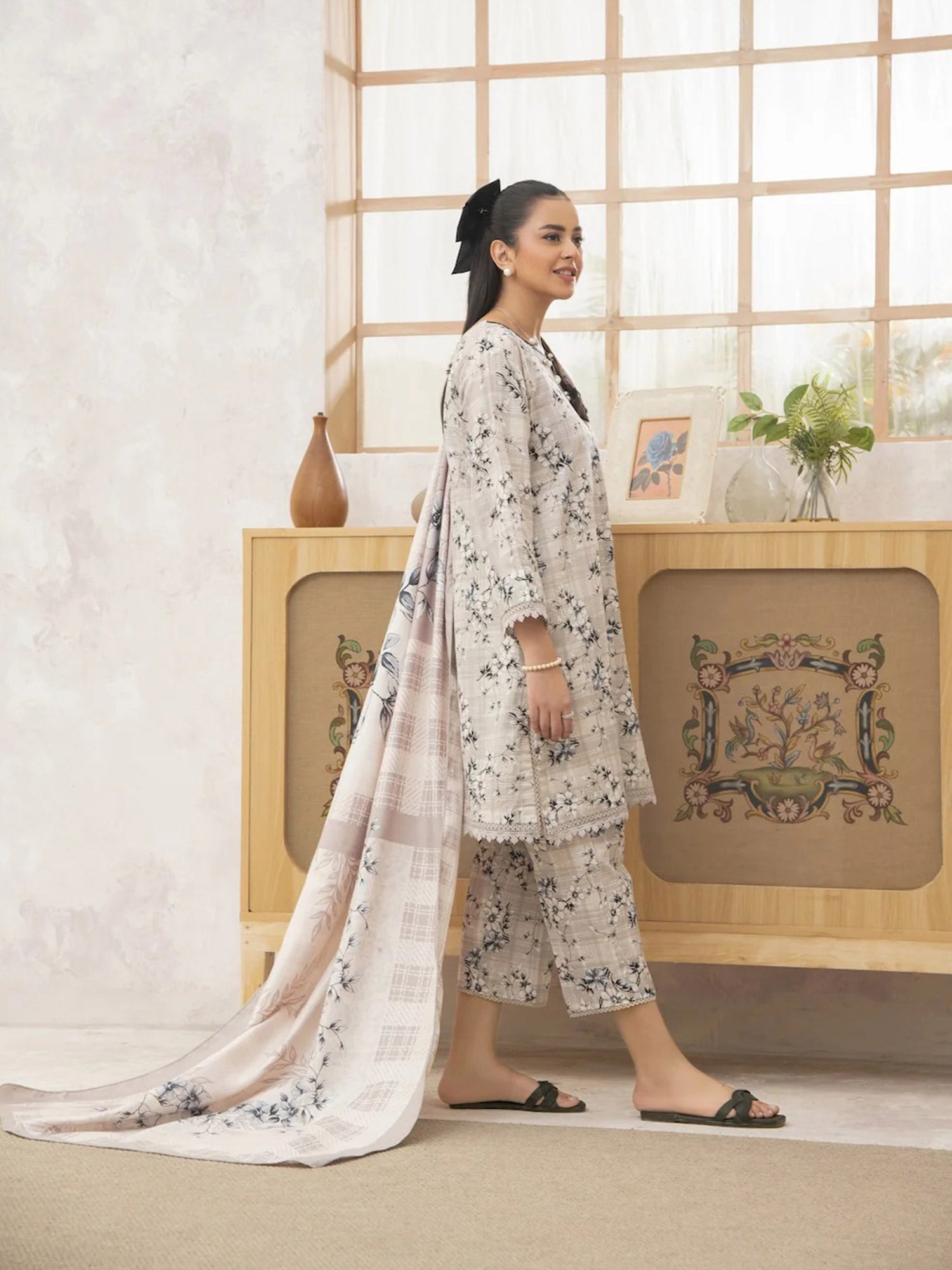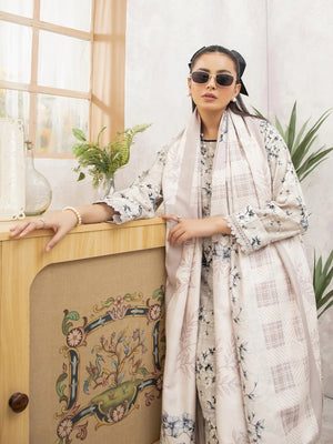 Ally's "Forbidden Flowers" Khaddar 3-Piece Suit - Light Beige