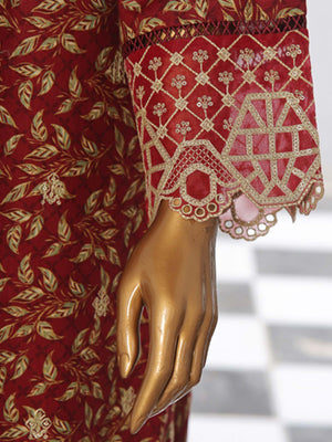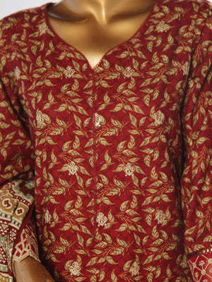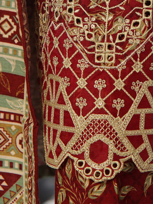 Bin Saeed Chikankari Embroidered Winter Khaddar Suit - Maroon