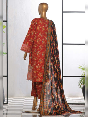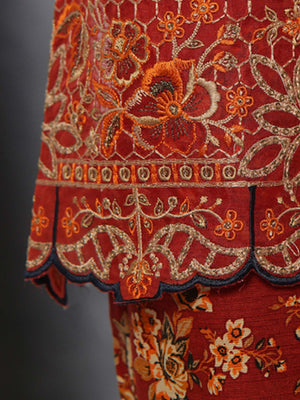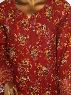 Bin Saeed Chikankari Embroidered Winter Khaddar Suit - Rust Red
