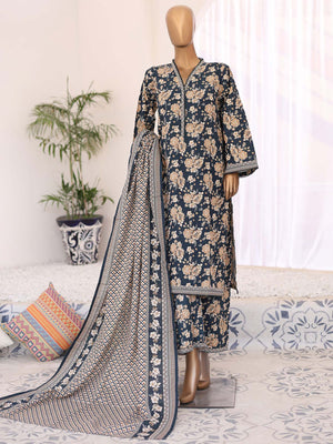 Bin Saeed Winter Khaddar Dark Zinc Floral 3-Piece Suit