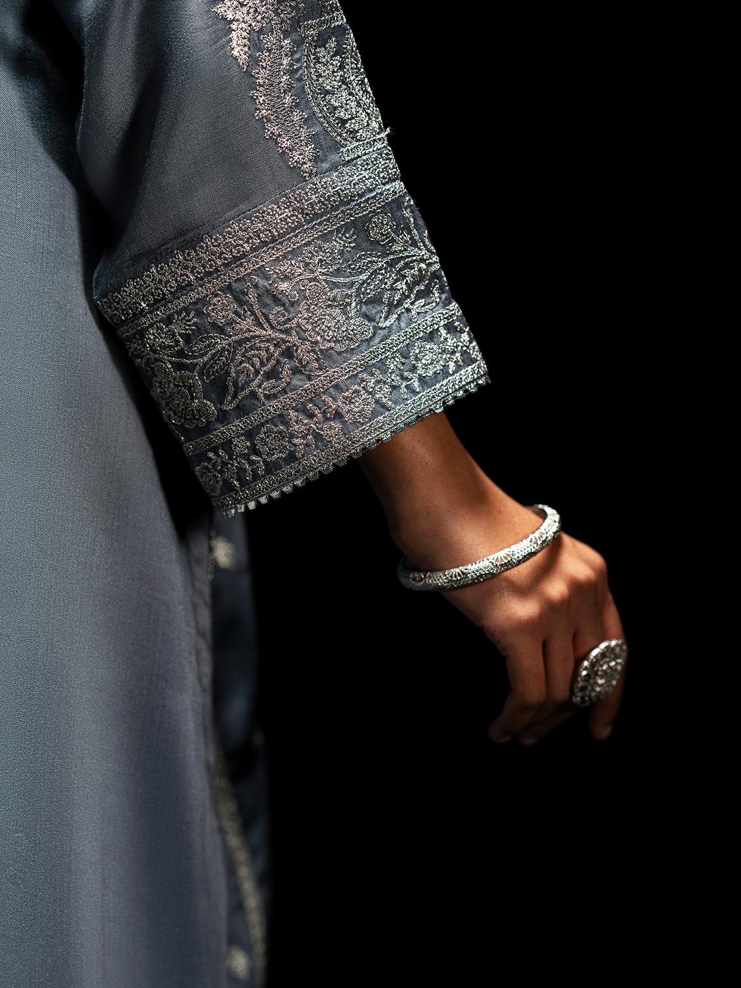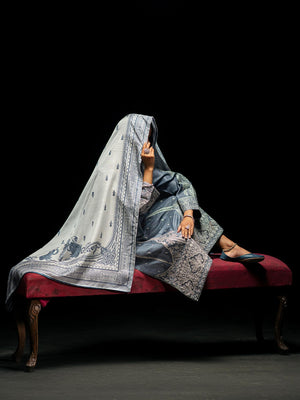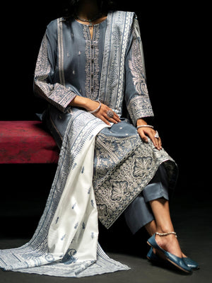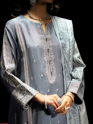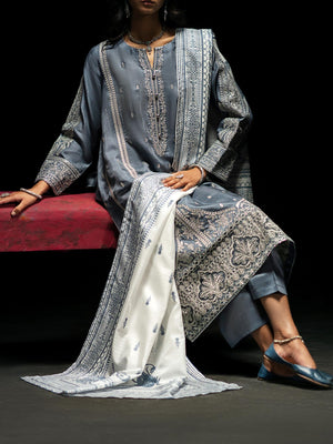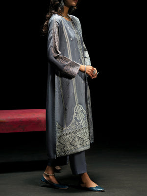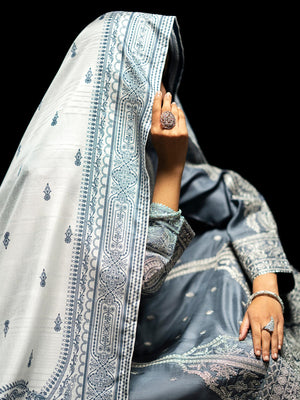 Casual Lite "Boutique" Embroidered Luxury Viscose Suit - Blue-Grey
