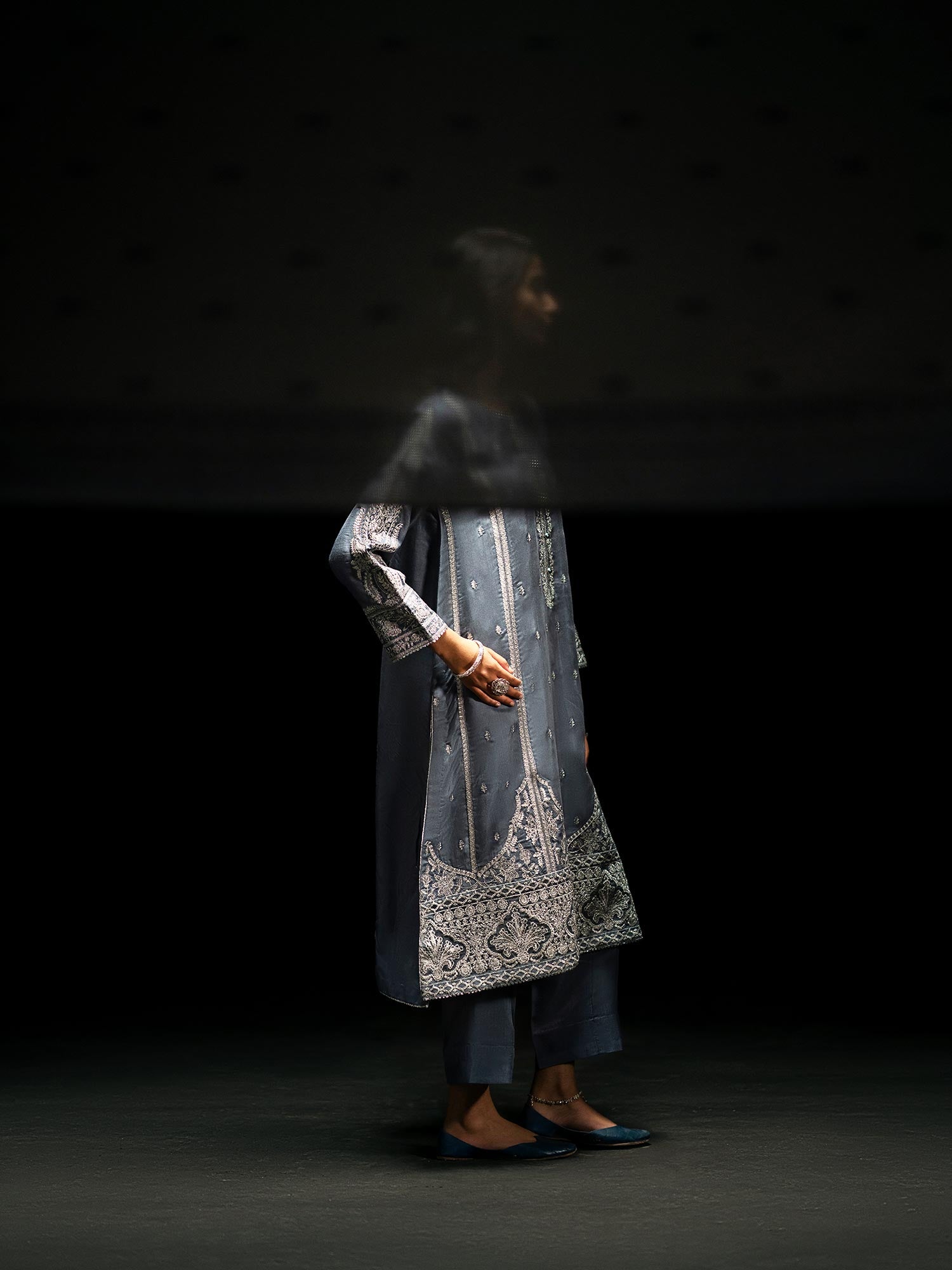 - Embroidered long viscose kameez.