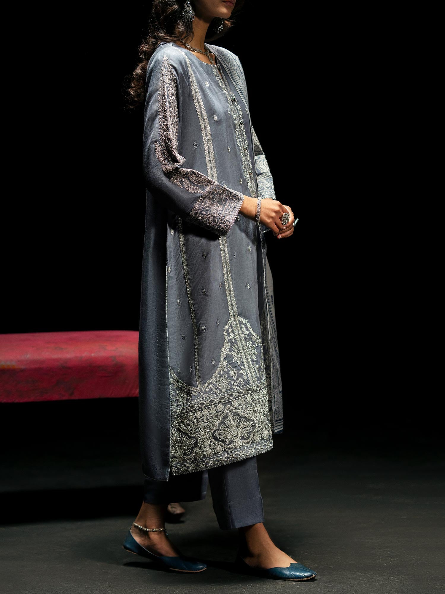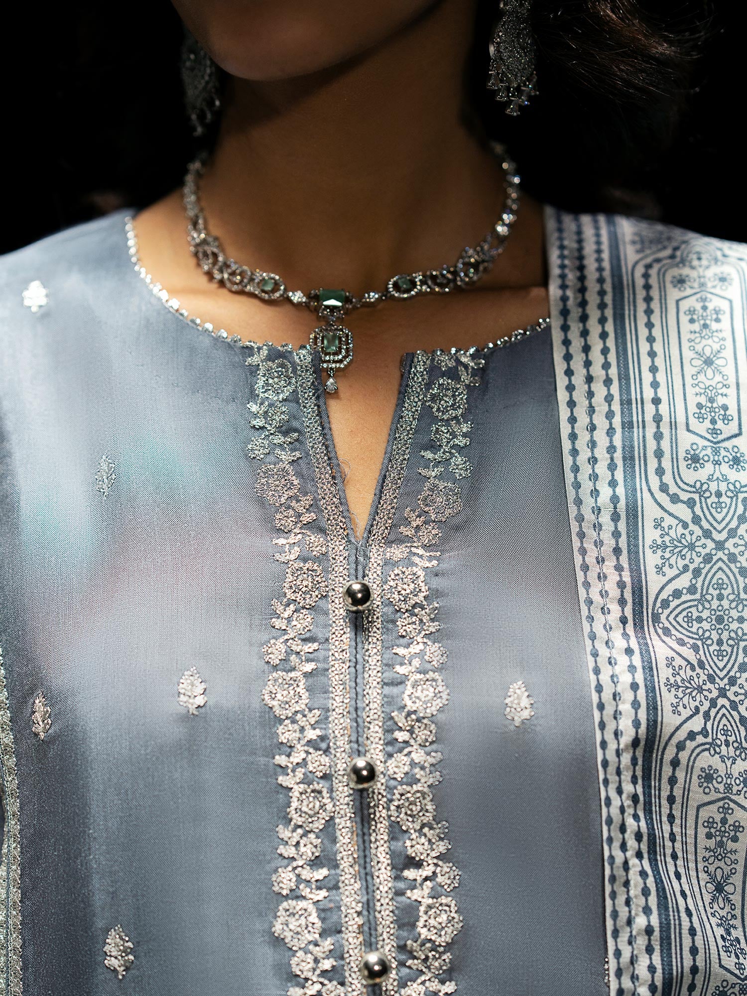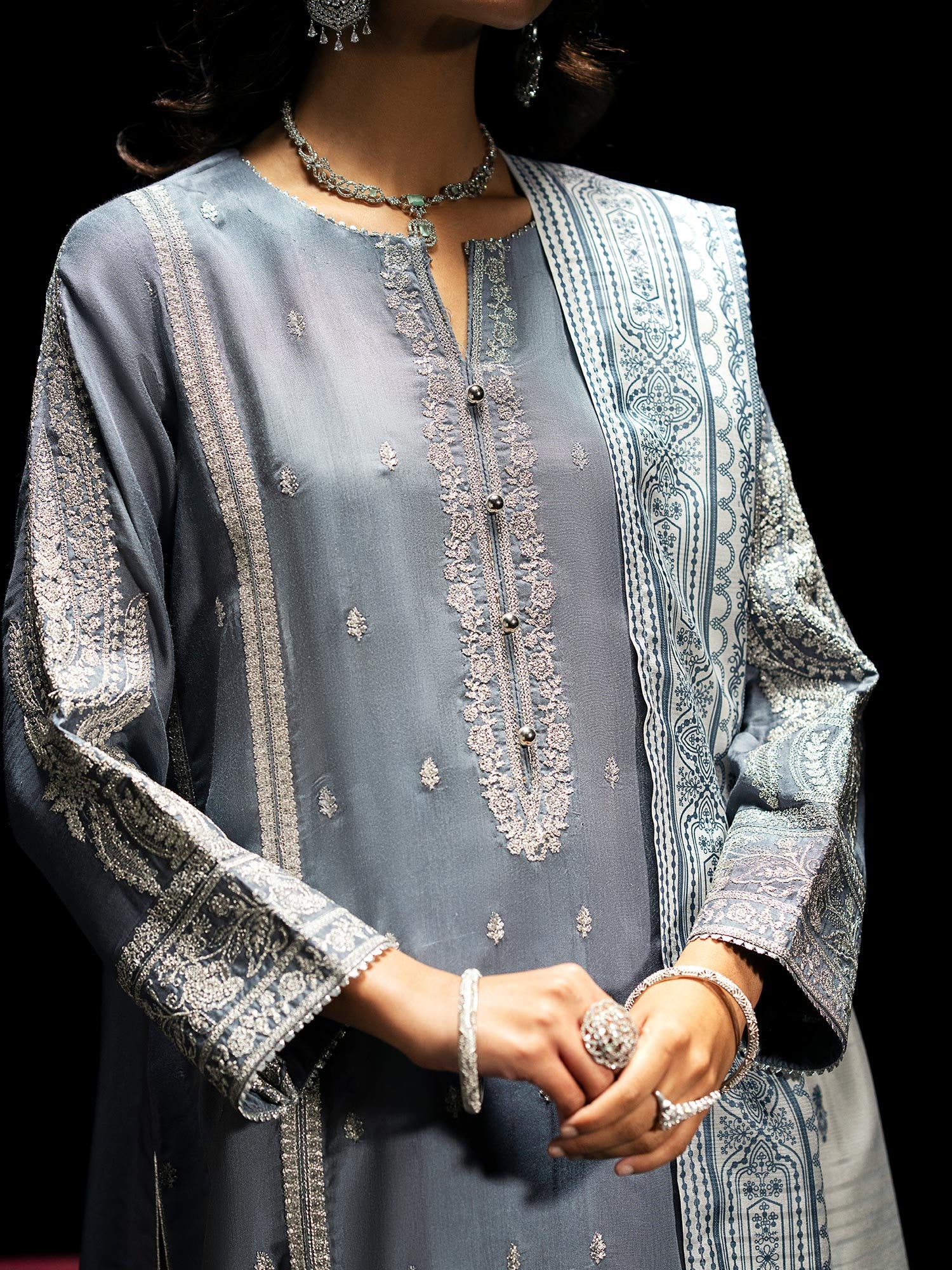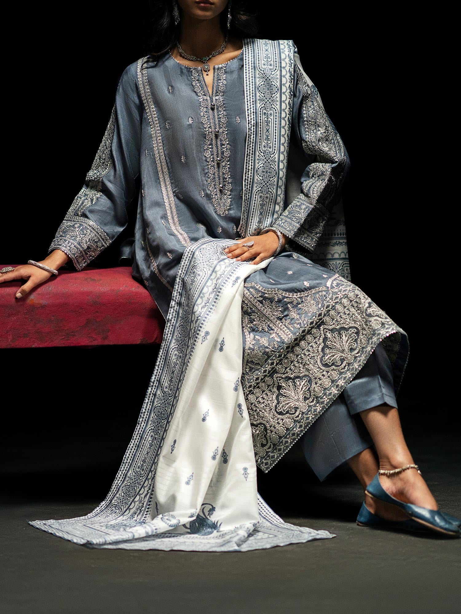- Paired with an elegant diamond chiffon dupatta