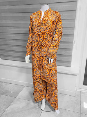 Co-Ords Winter Linen Casual 2-Piece Suit - Orange
