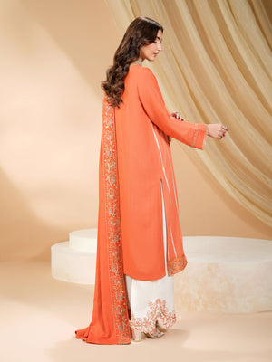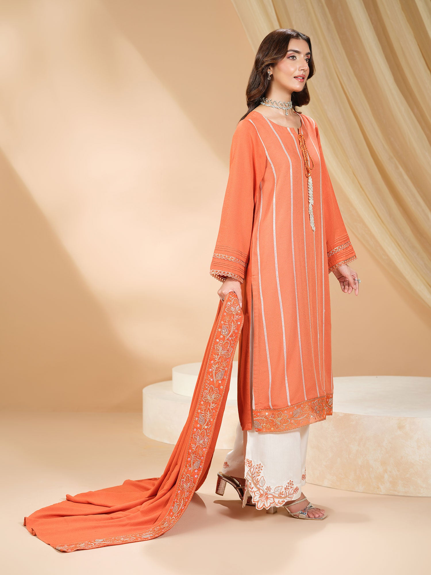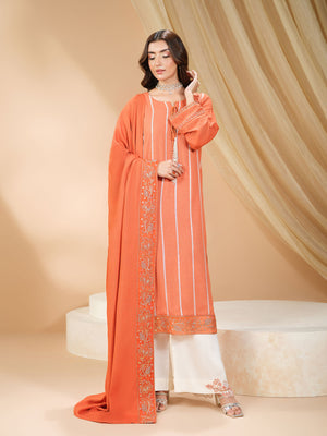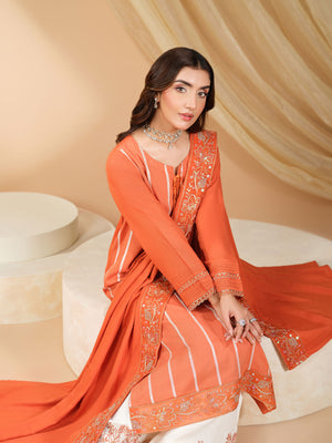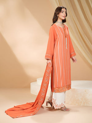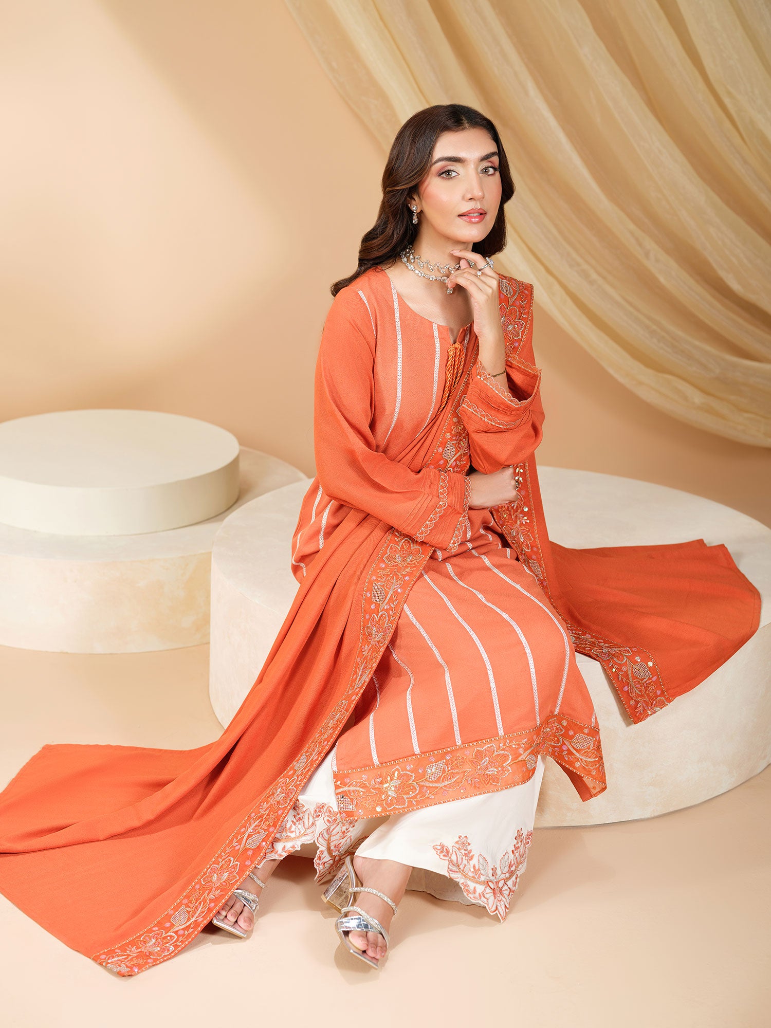 Heera's Embroidered Dhanak 3-Piece Suit - Burnt Saffron
