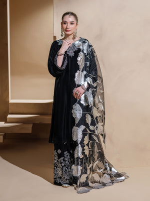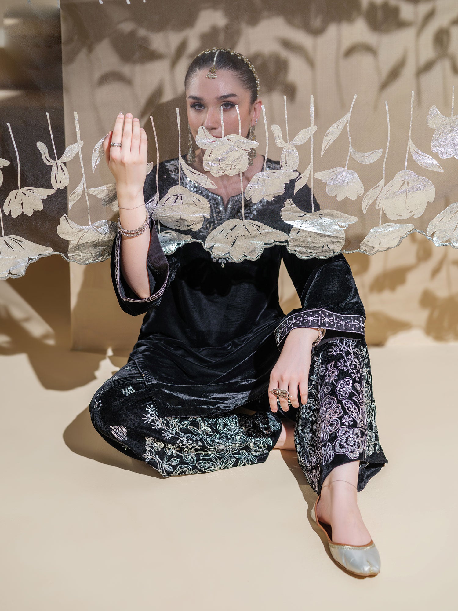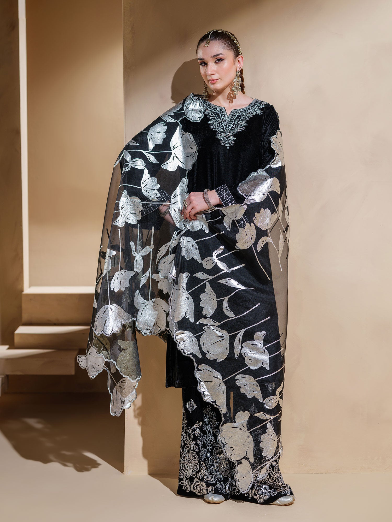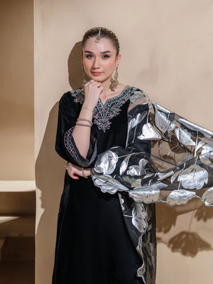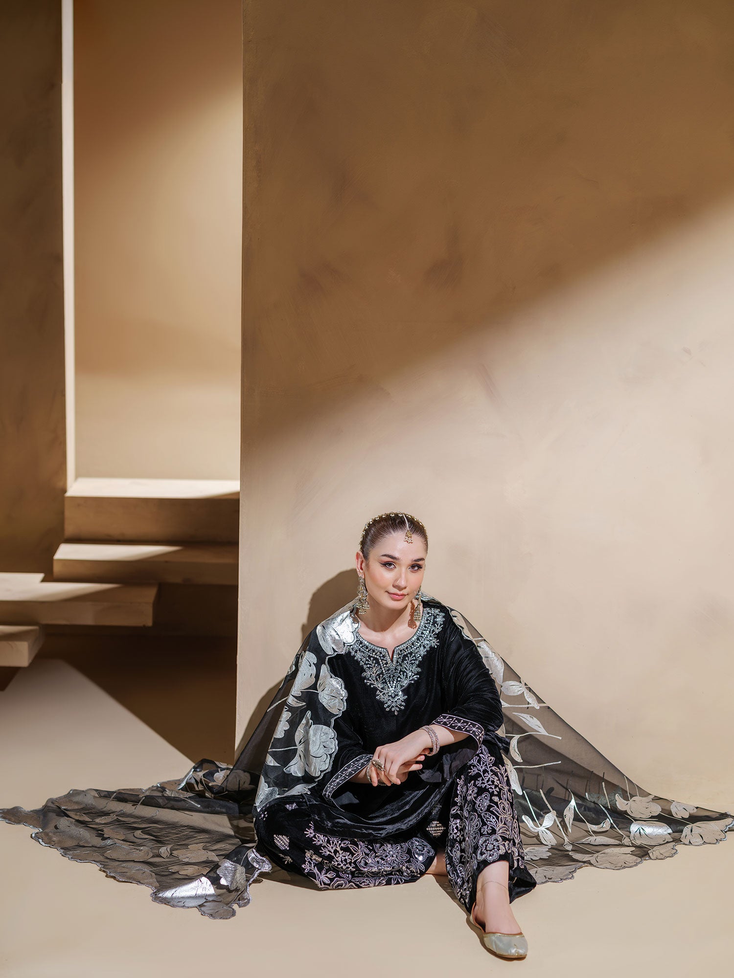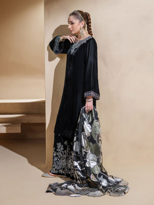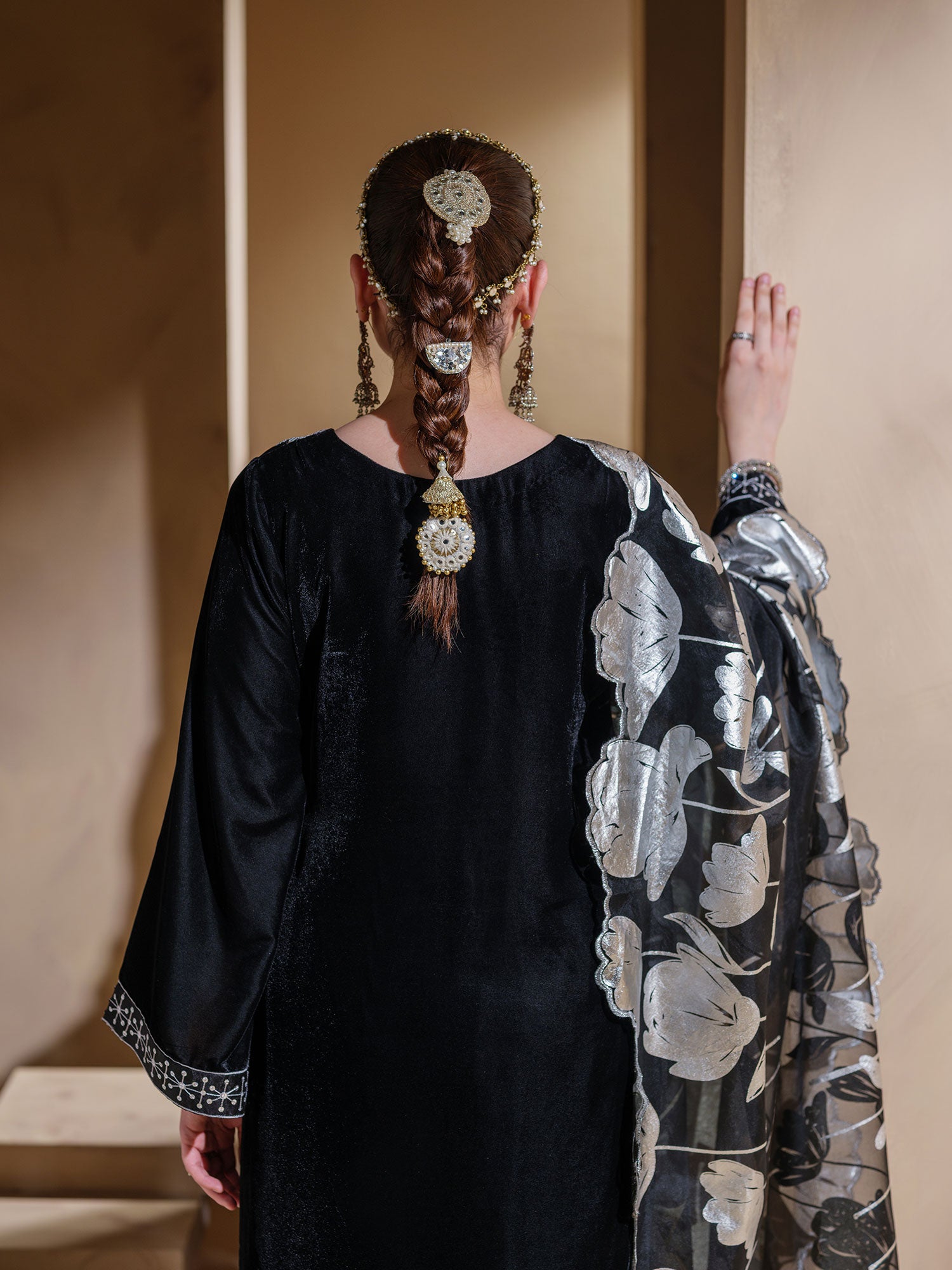 Heera's Premium Velvet 3-Piece Suit - Black Stella Velvet