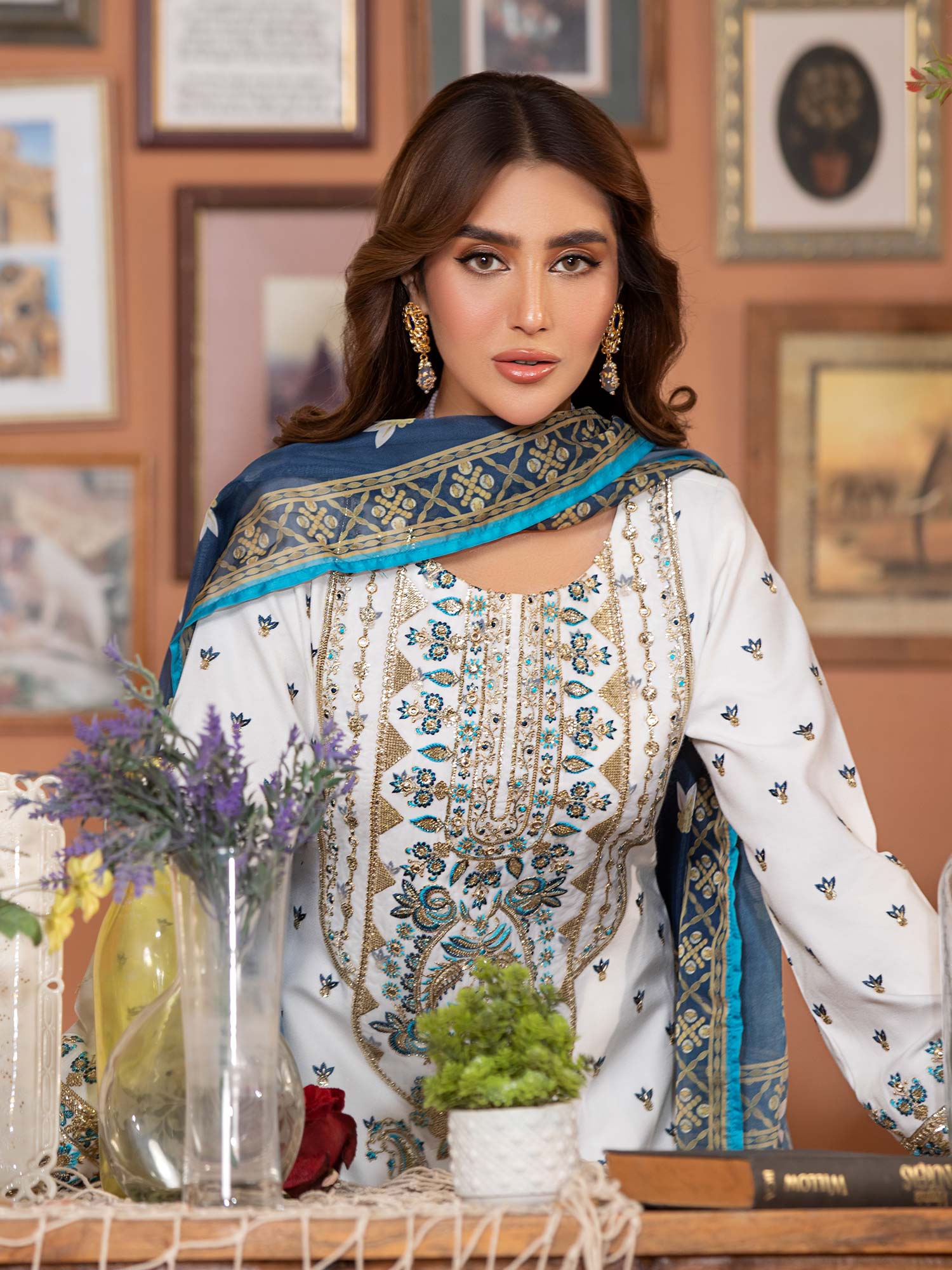Heera's Luxury Embroidered Linen 3-Piece Suit