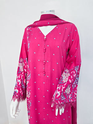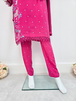 Hot Pink Soft Linen Casual 3-Piece Suit