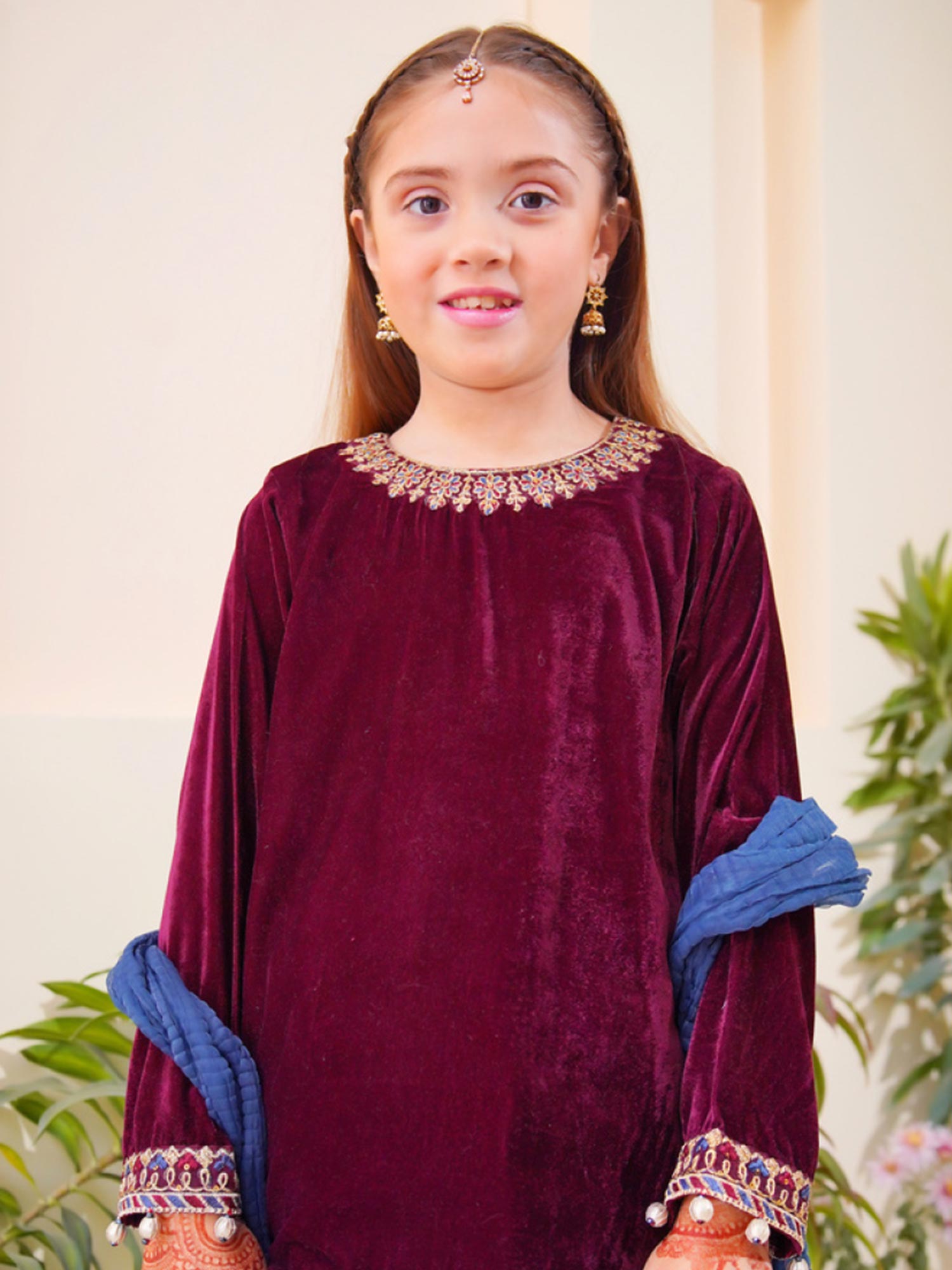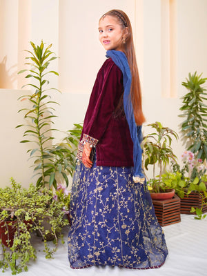 Kids Velvet Festive 3-Piece Lehnga Suit