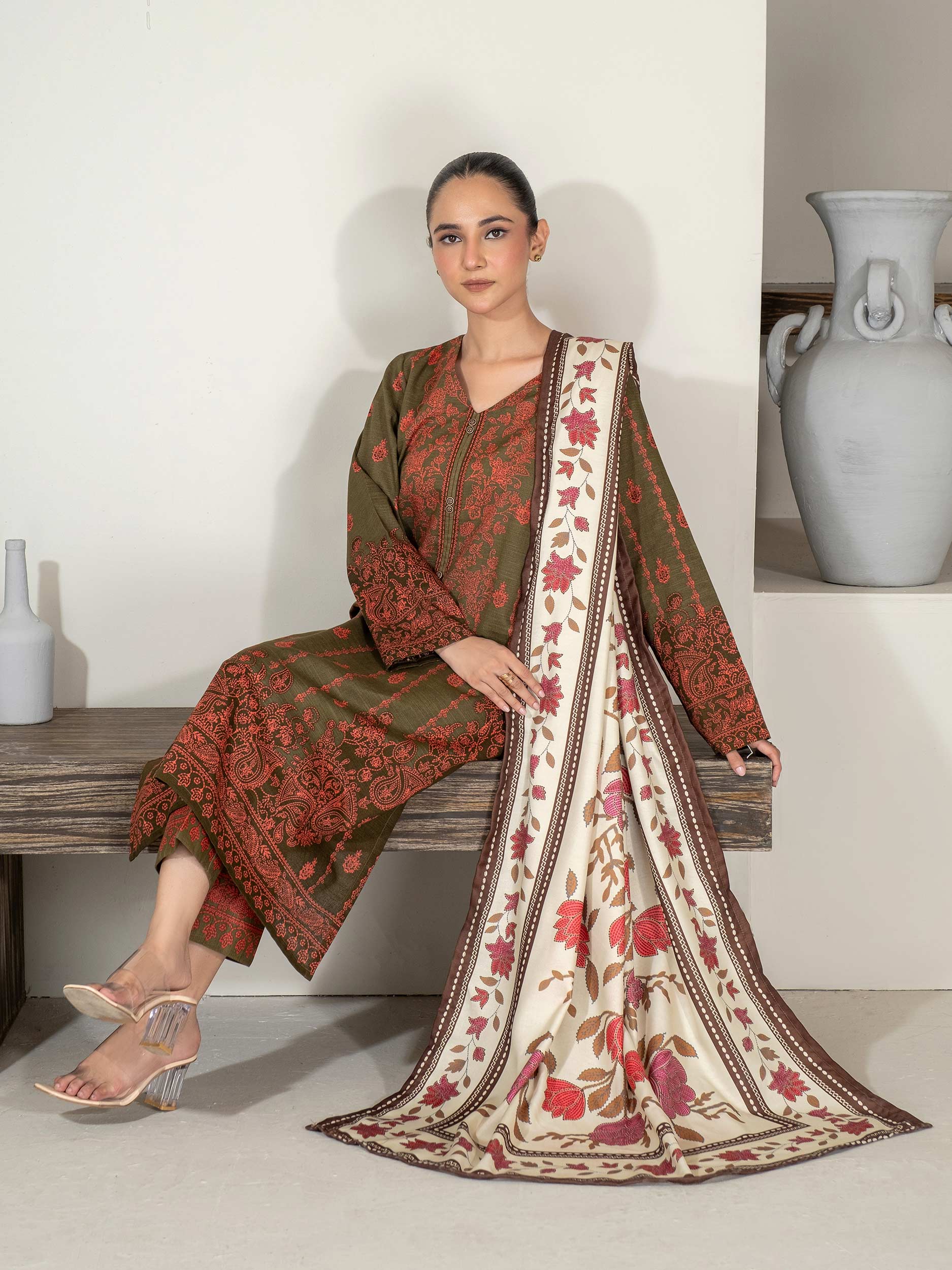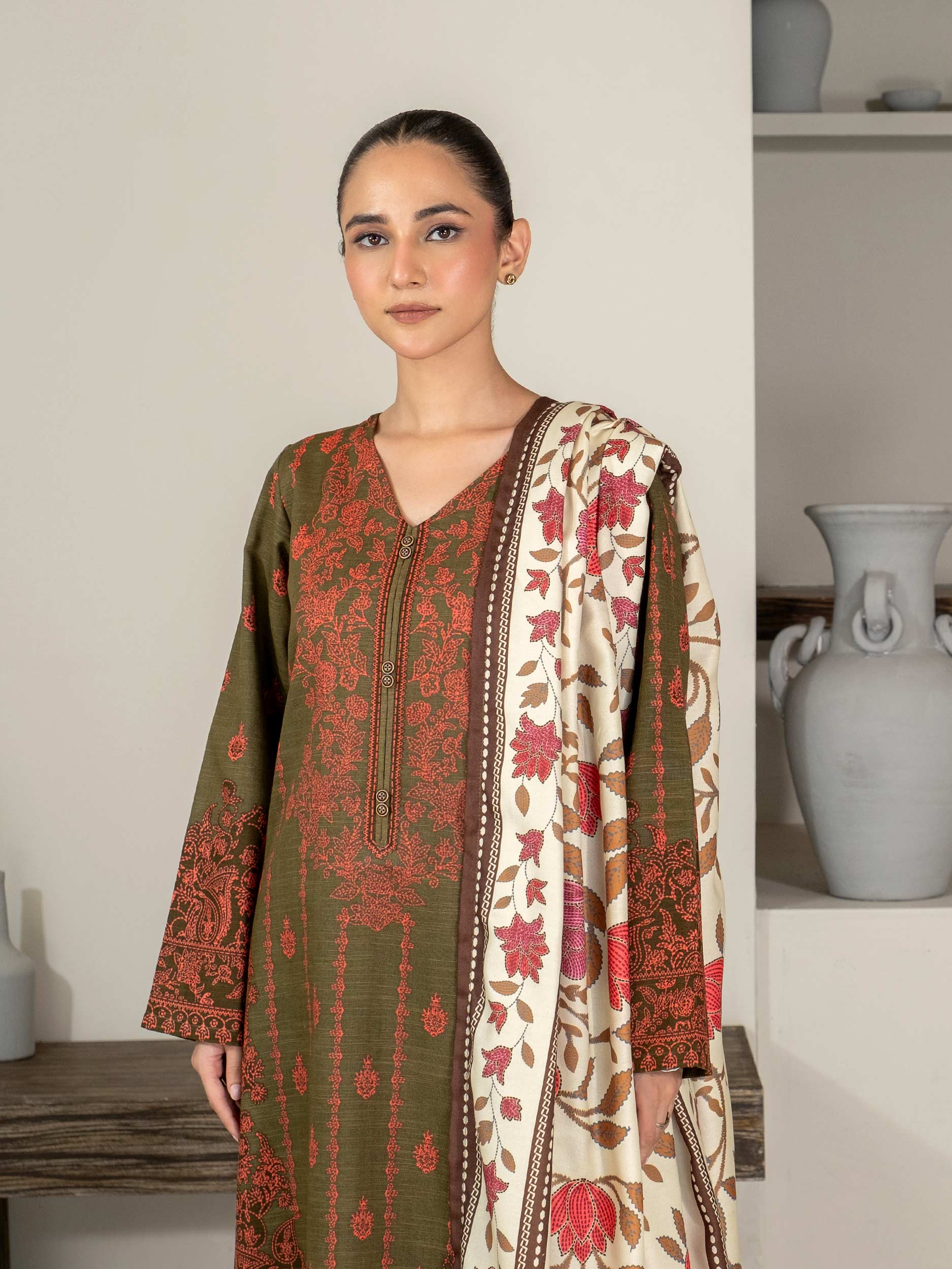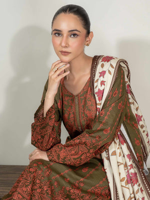 Limelight Unstitched Khaddar 3-Piece Suit - Brown