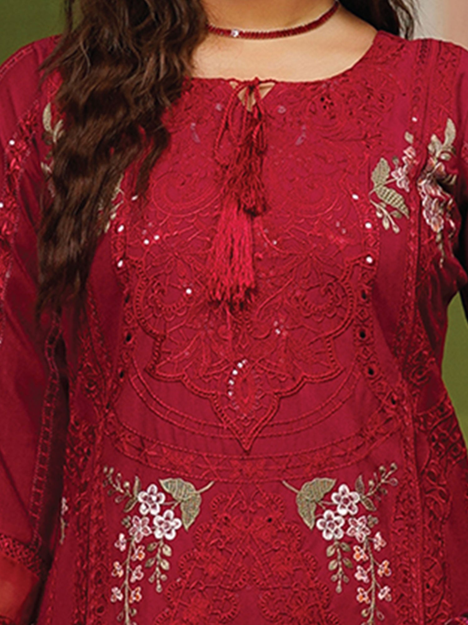 Munira Embroidered Winter Dhanak Suit (MSL-02) - Red