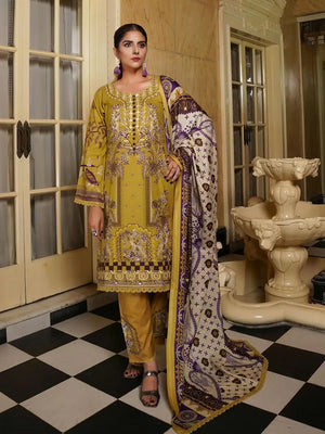 Munira Embroidered Winter Dhanak Suit (MSL-07) - Mustard