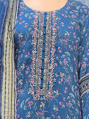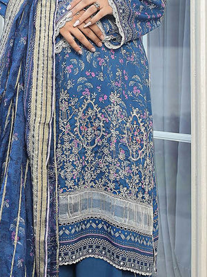 Munira Embroidered Winter Linen Suit (MSL-02) - Blue
