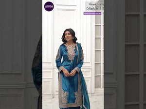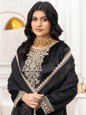 Rangz "Afreen" Velvet Embroidered 3-Piece Suit - Black