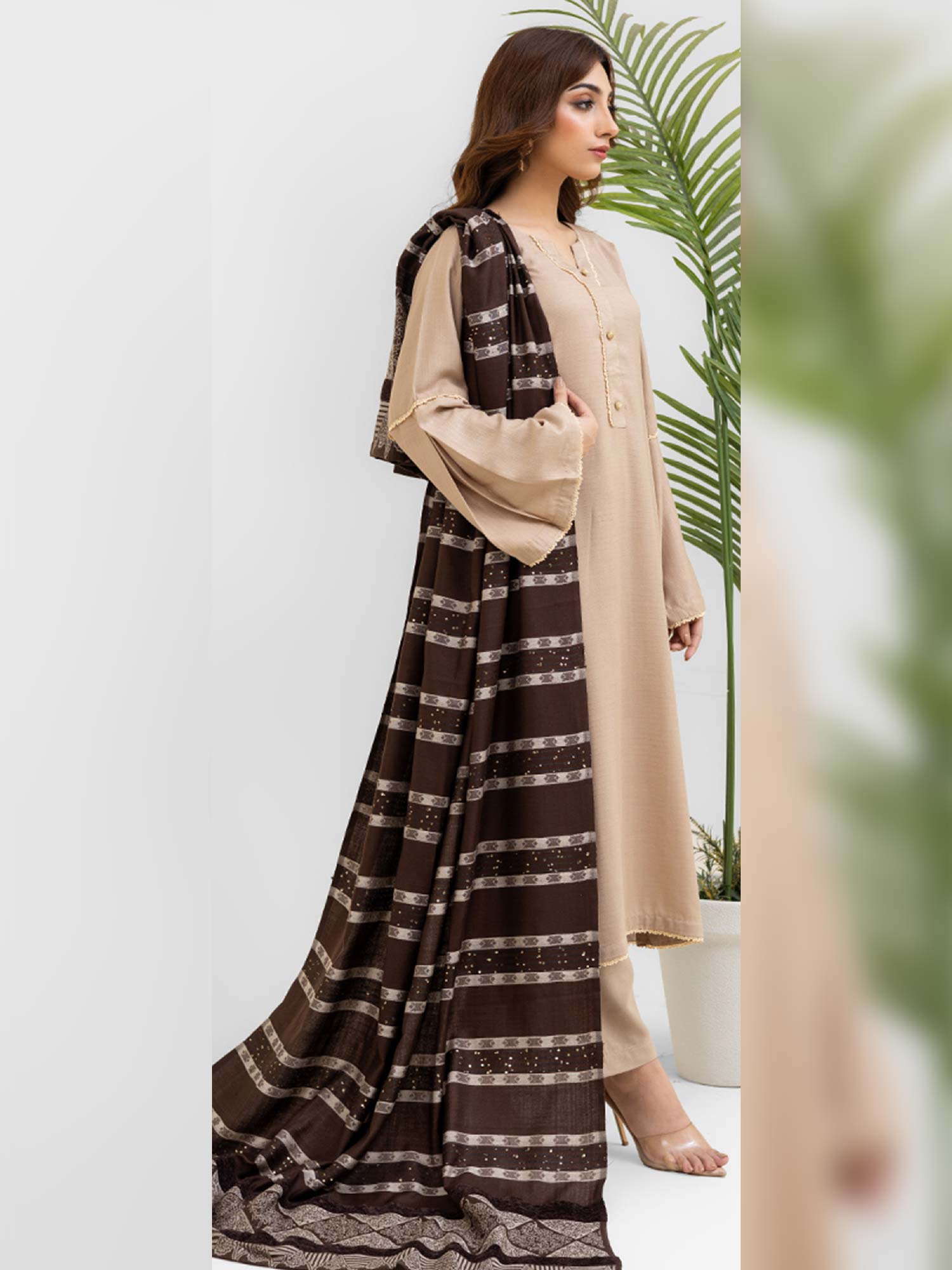 Rangz Beige Winter Dhanak Suit with Kashmiri Wool Shawl