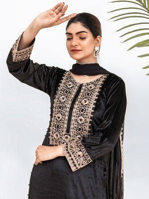 Rangz Black Velvet Embroidered 3-Piece Suit