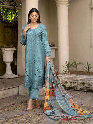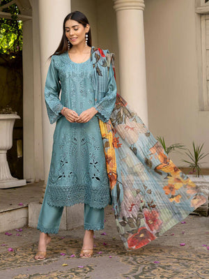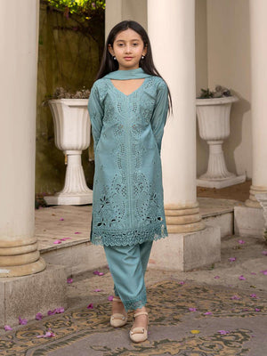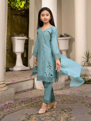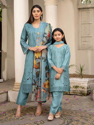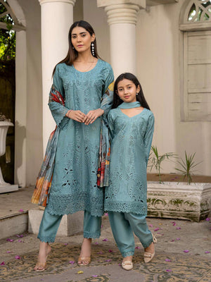 Rangz Chikankari Mother-Daughter 3-Piece Suit - Aqua Blue