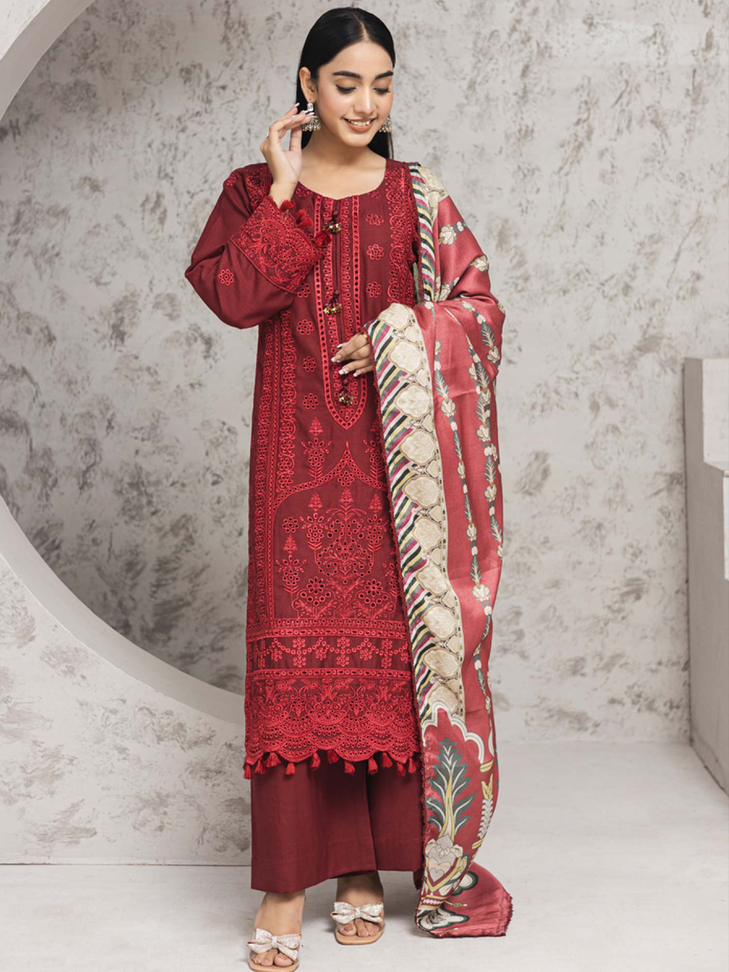 Rangz Dark Red Winter Chikankari Dhanak Suit with Shawl