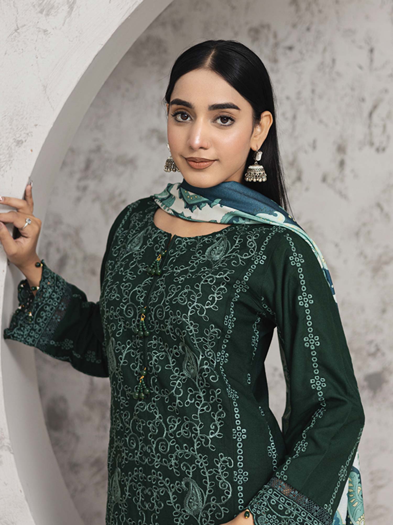 Rangz Green Winter Chikankari Dhanak Suit with Shawl