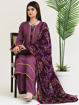 Rangz Plum Winter Dhanak Suit with Plachi Shawl