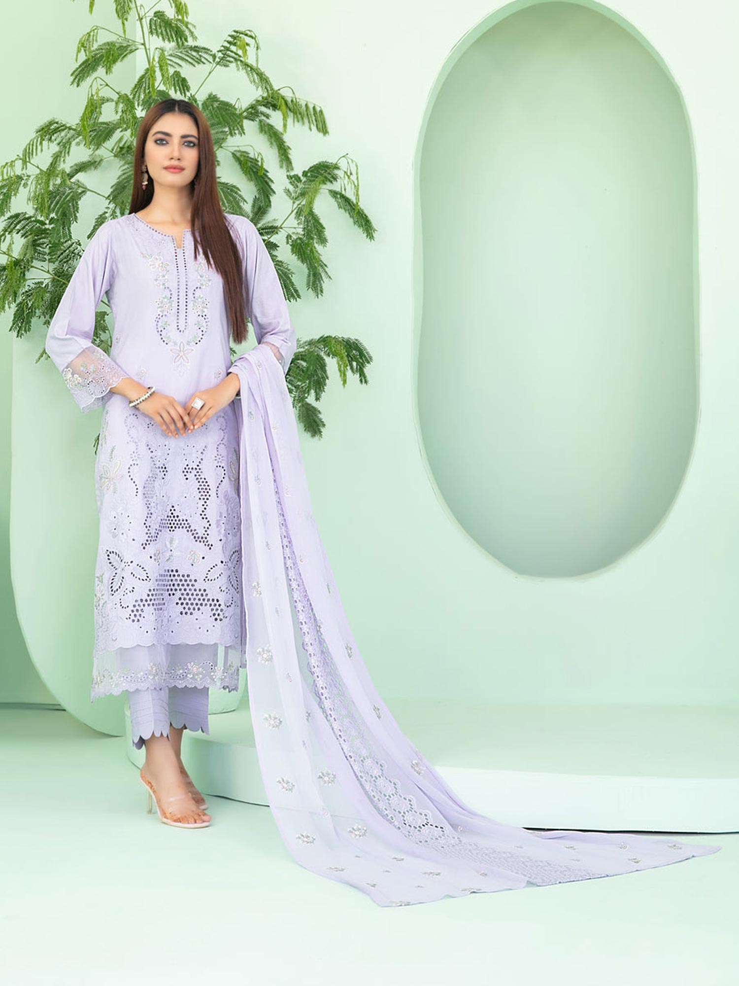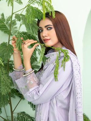 Tawakkal "Sihana" Embroidered Staple Linen Suit (D3913) - Lilac