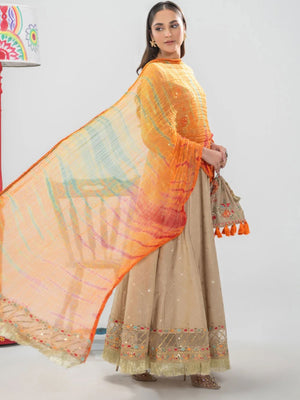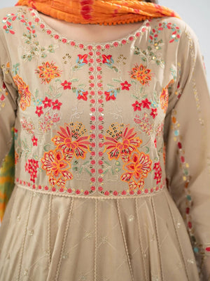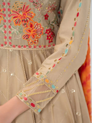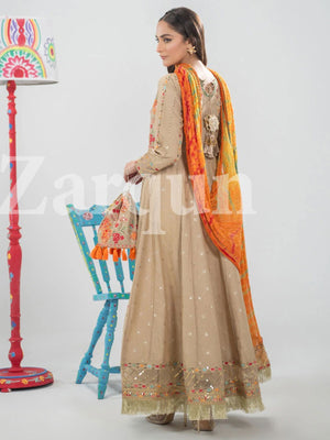 Zarqun Beige Embroidered Luxury Cotton Maxi Suit (2431B)