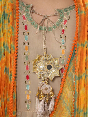 • Banar lace at maxi hem along with heavily embroidered organza boarders