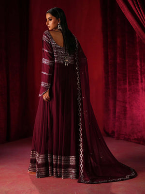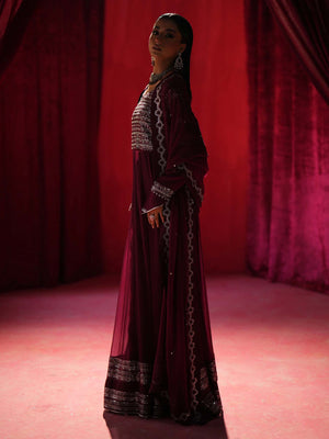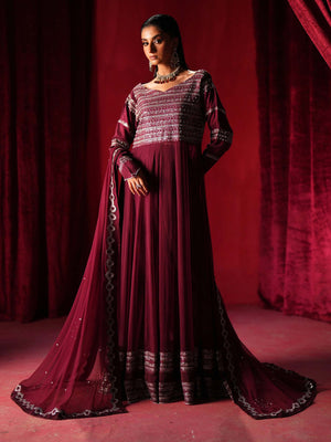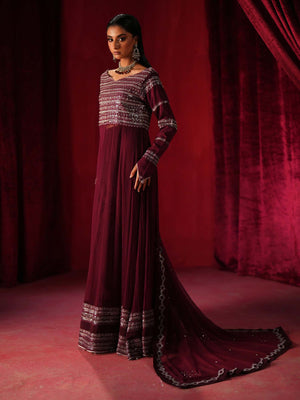 Zarqun Embroidered Chiffon Maxi Suit - Plum (2438A)
