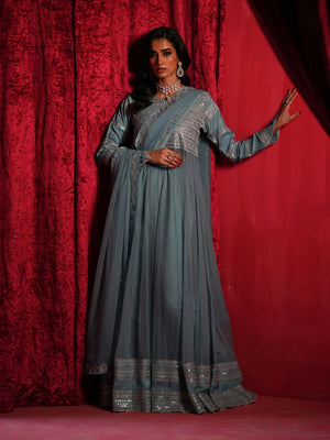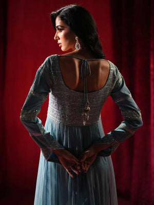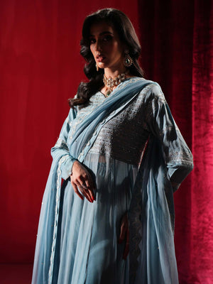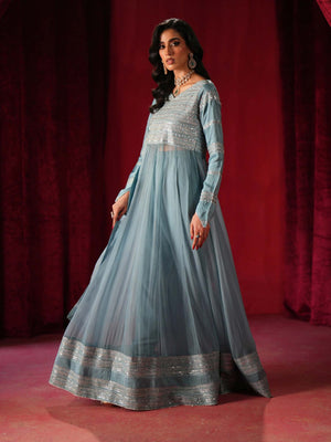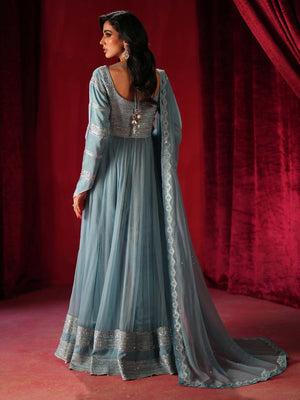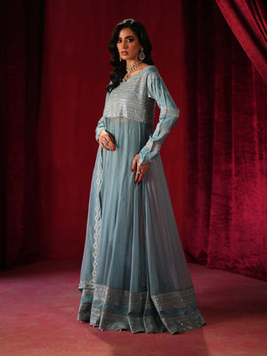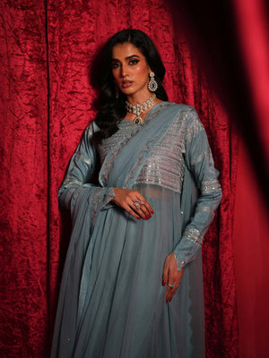Zarqun Embroidered Chiffon Maxi Suit - Sky Blue (2438B)