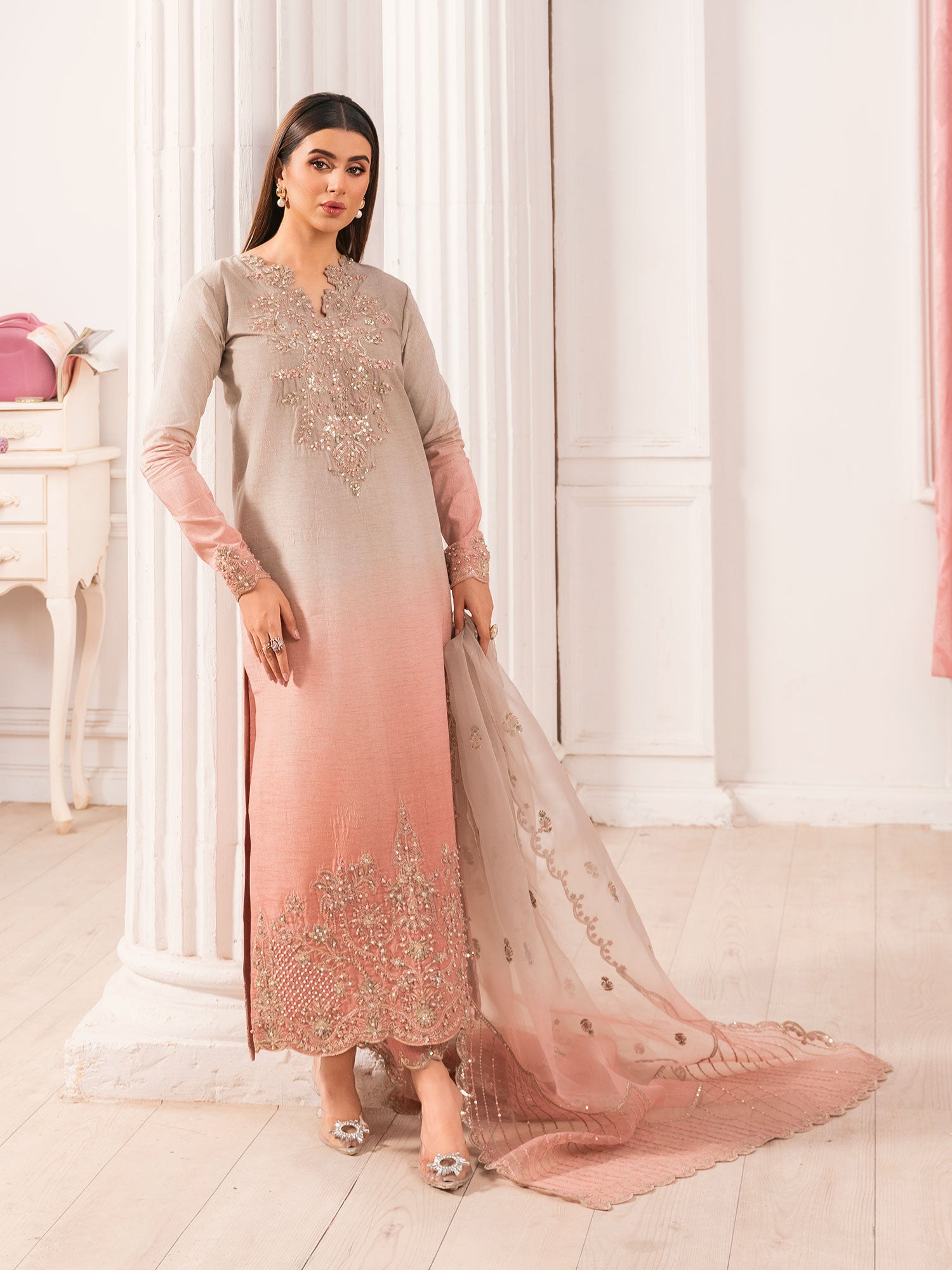 Zarqun Festive Raw Silk Long Shirt 3-Piece Suit - Pink Shades (2531B)