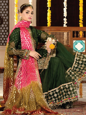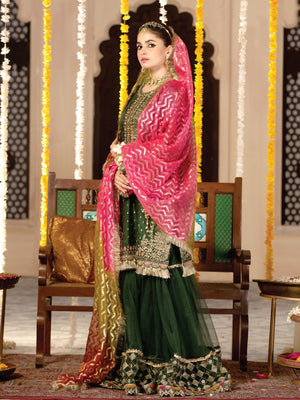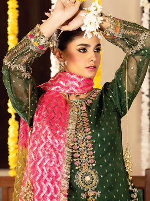 Zarqun Green Soft Organza Embroidered Suit with Gharara