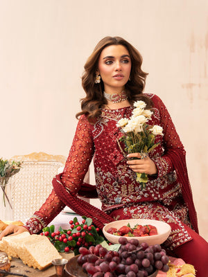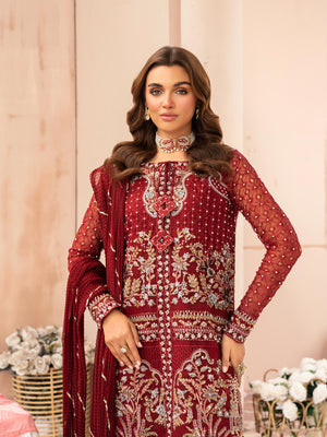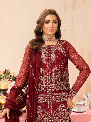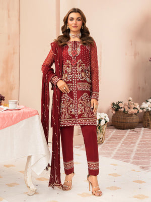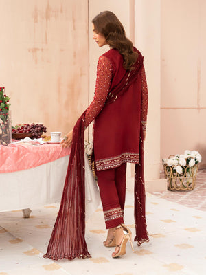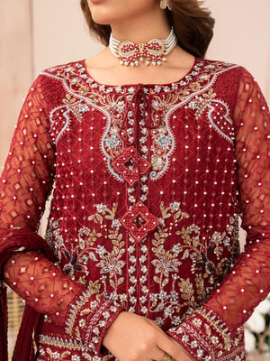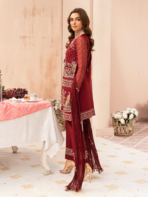 Zarqun Luxury Organza 3-Piece Suit - Maroon (2520B)