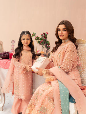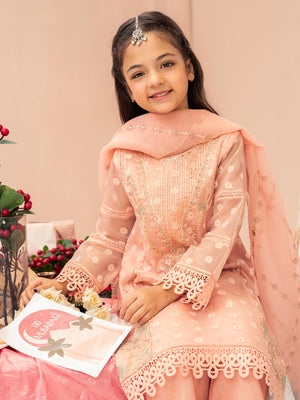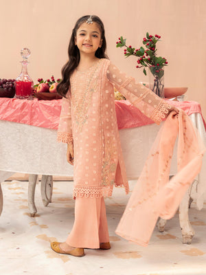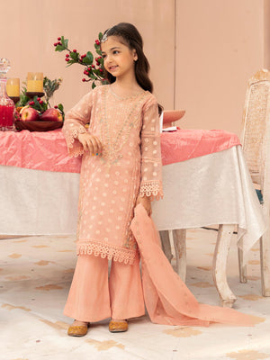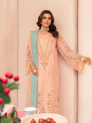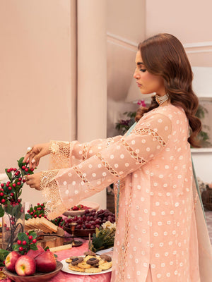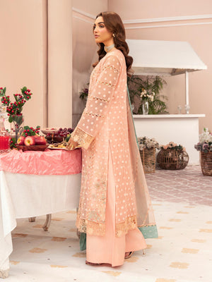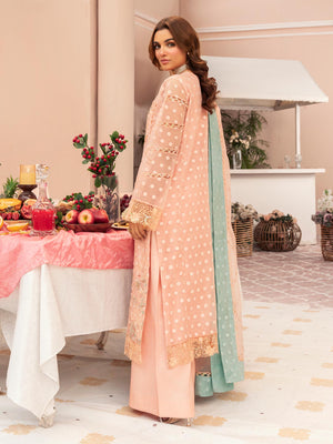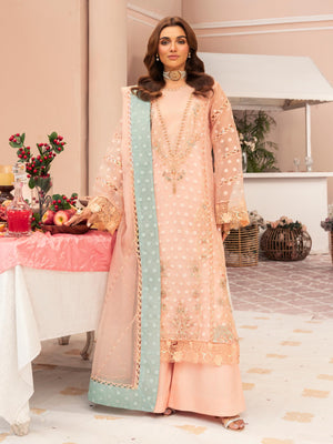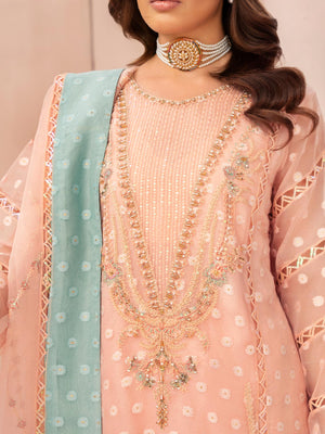 Zarqun Luxury Organza 3-Piece Suit - Peach (2521B)
