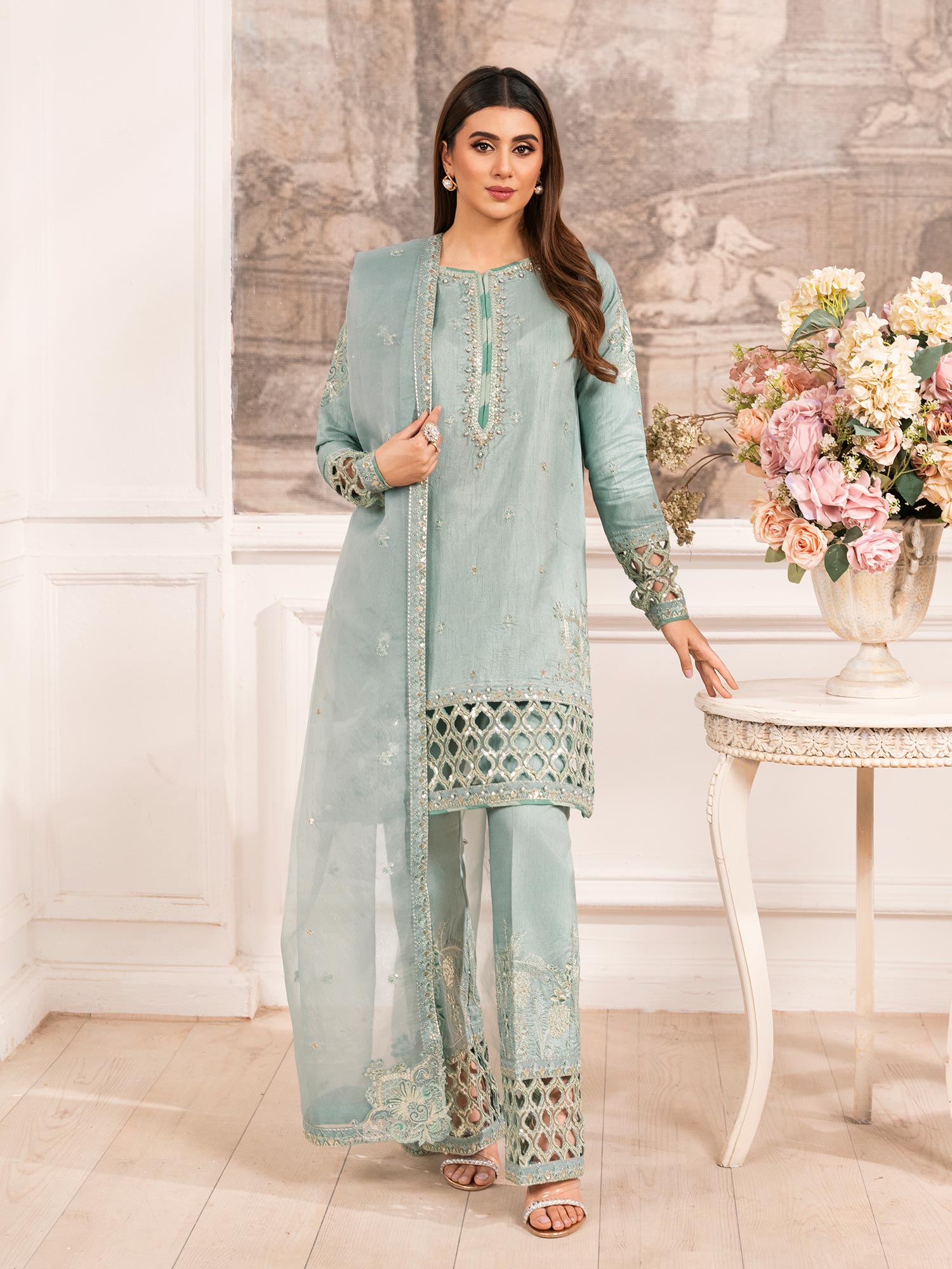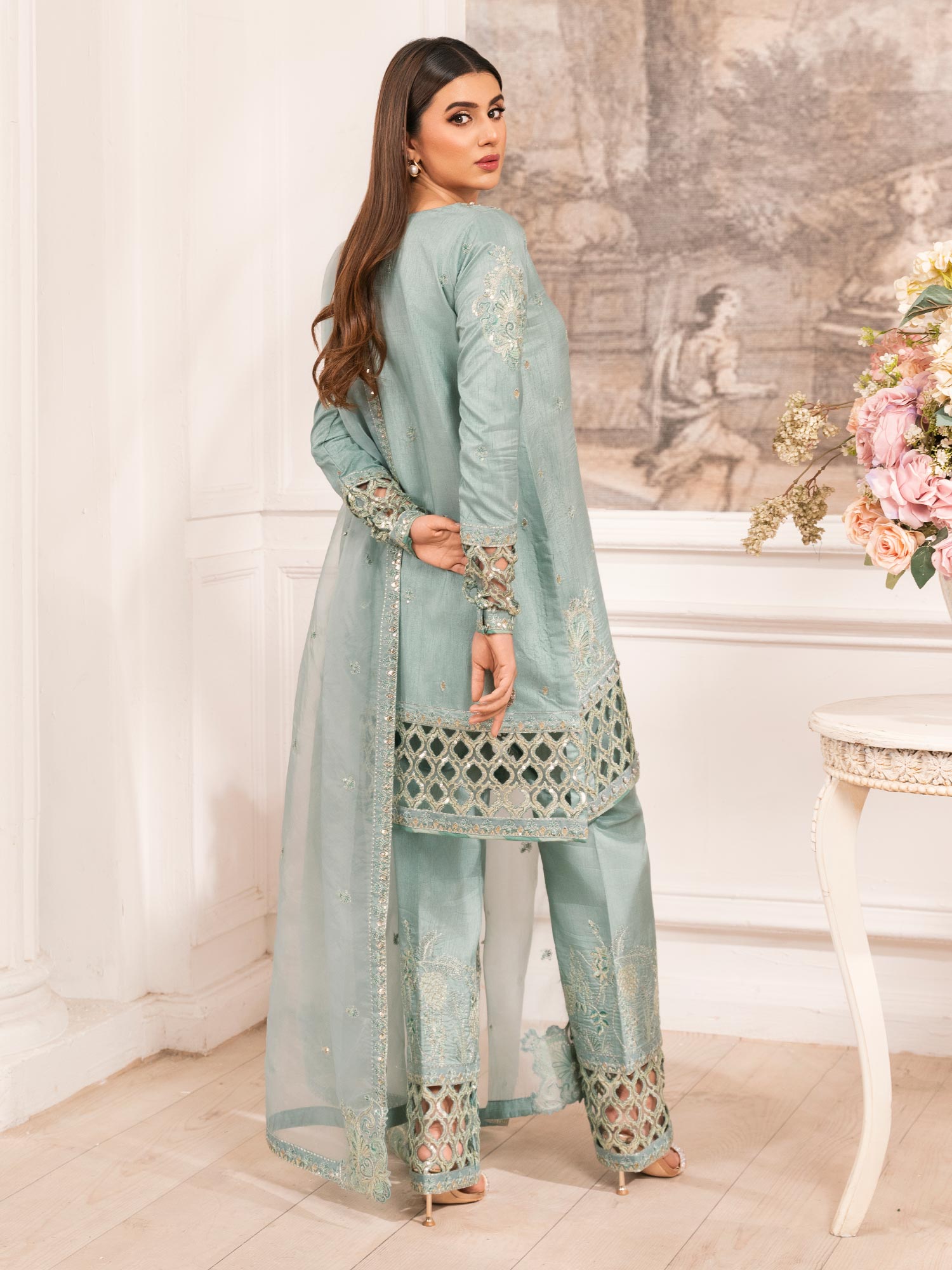 Zarqun Luxury Rawsilk 3-Piece Suit - Aqua (2528A)