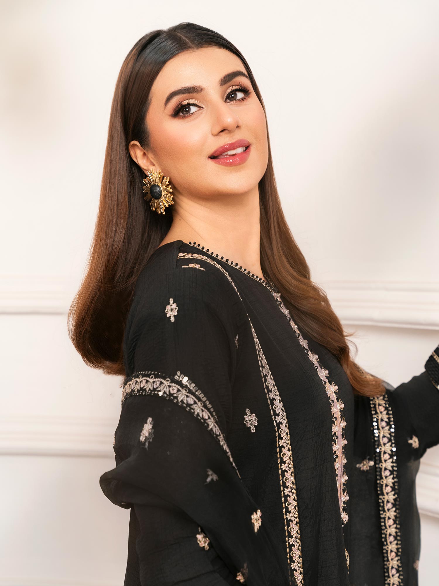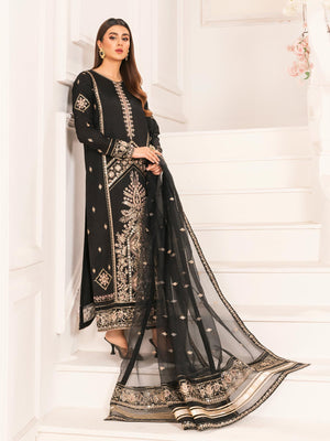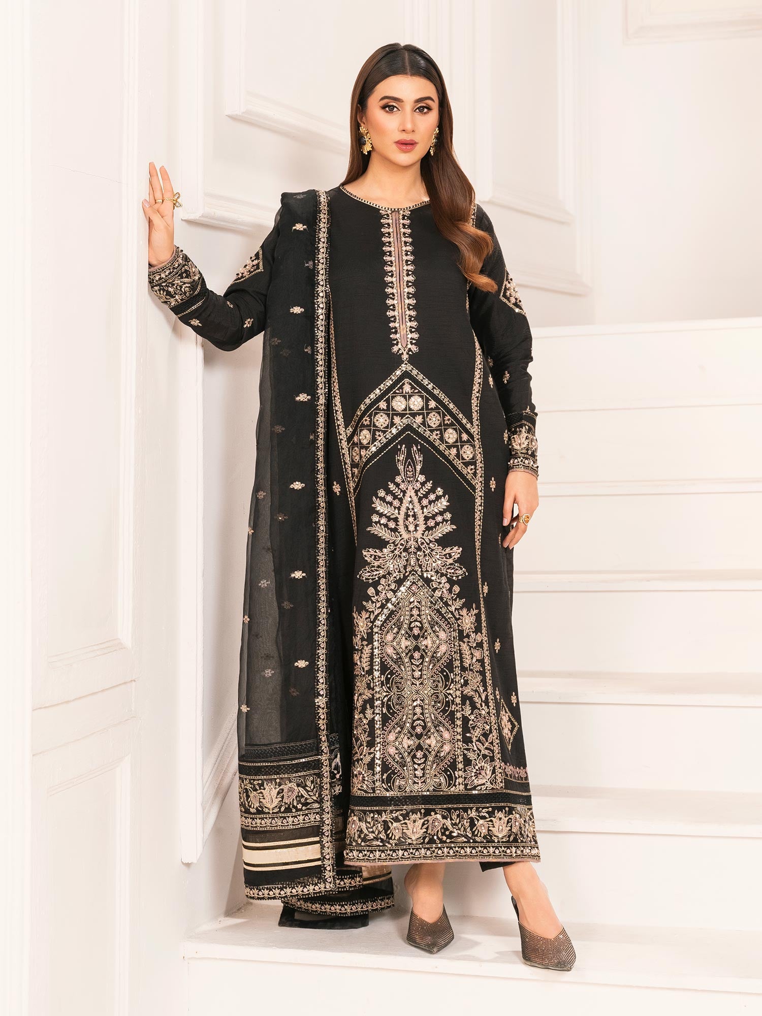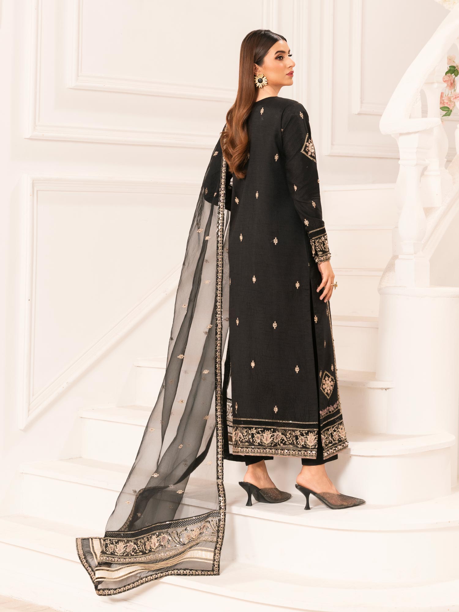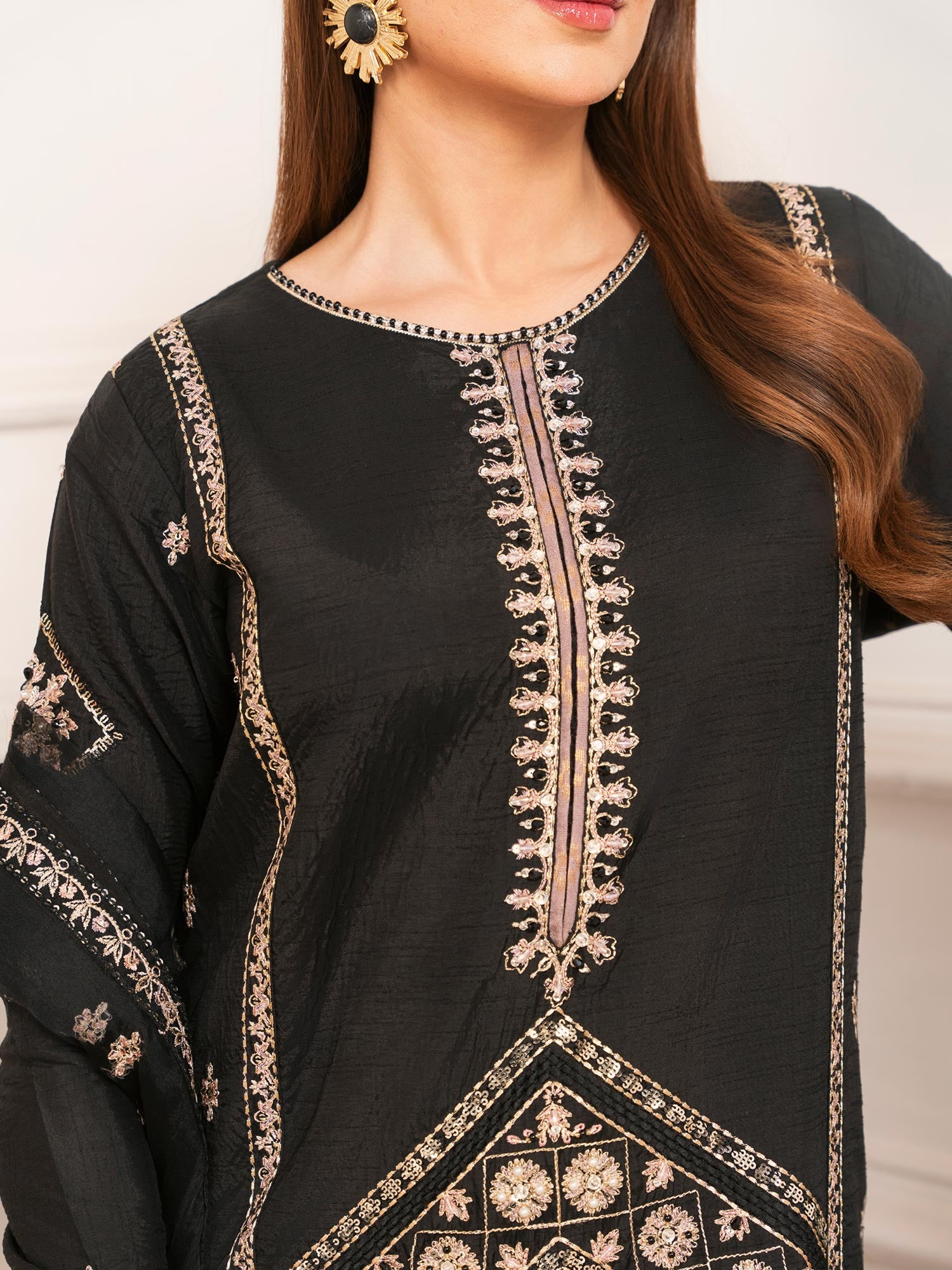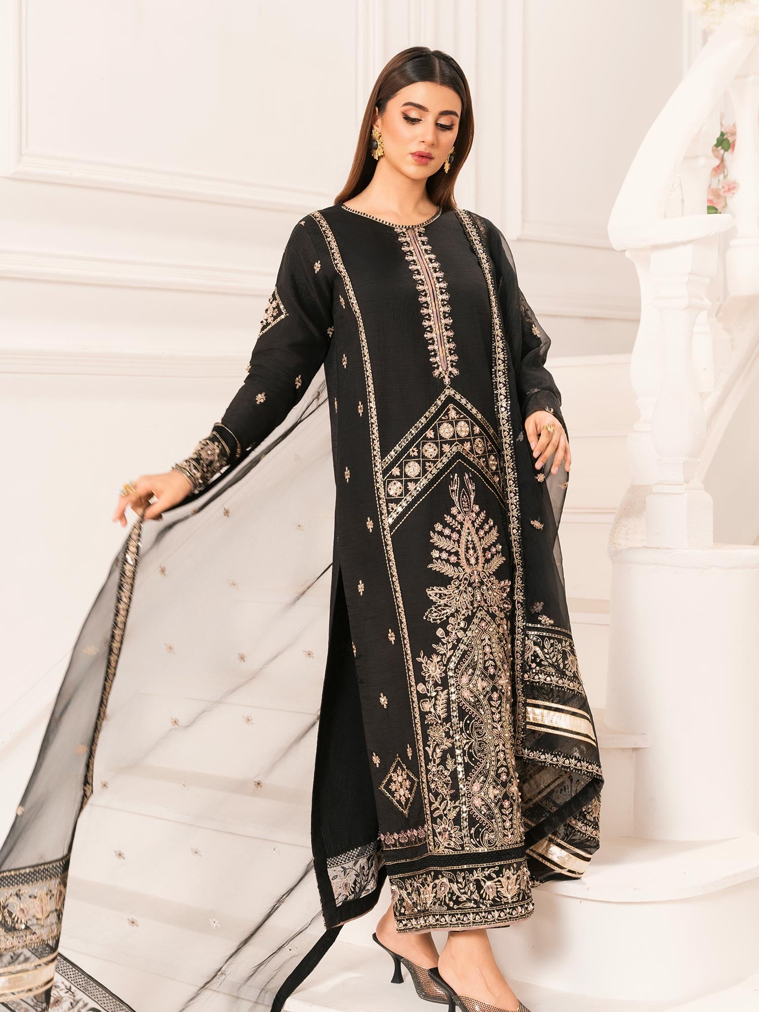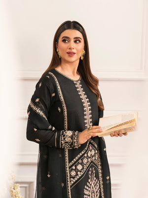 Zarqun Luxury Rawsilk 3-Piece Suit - Black (2530A)