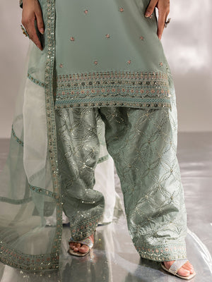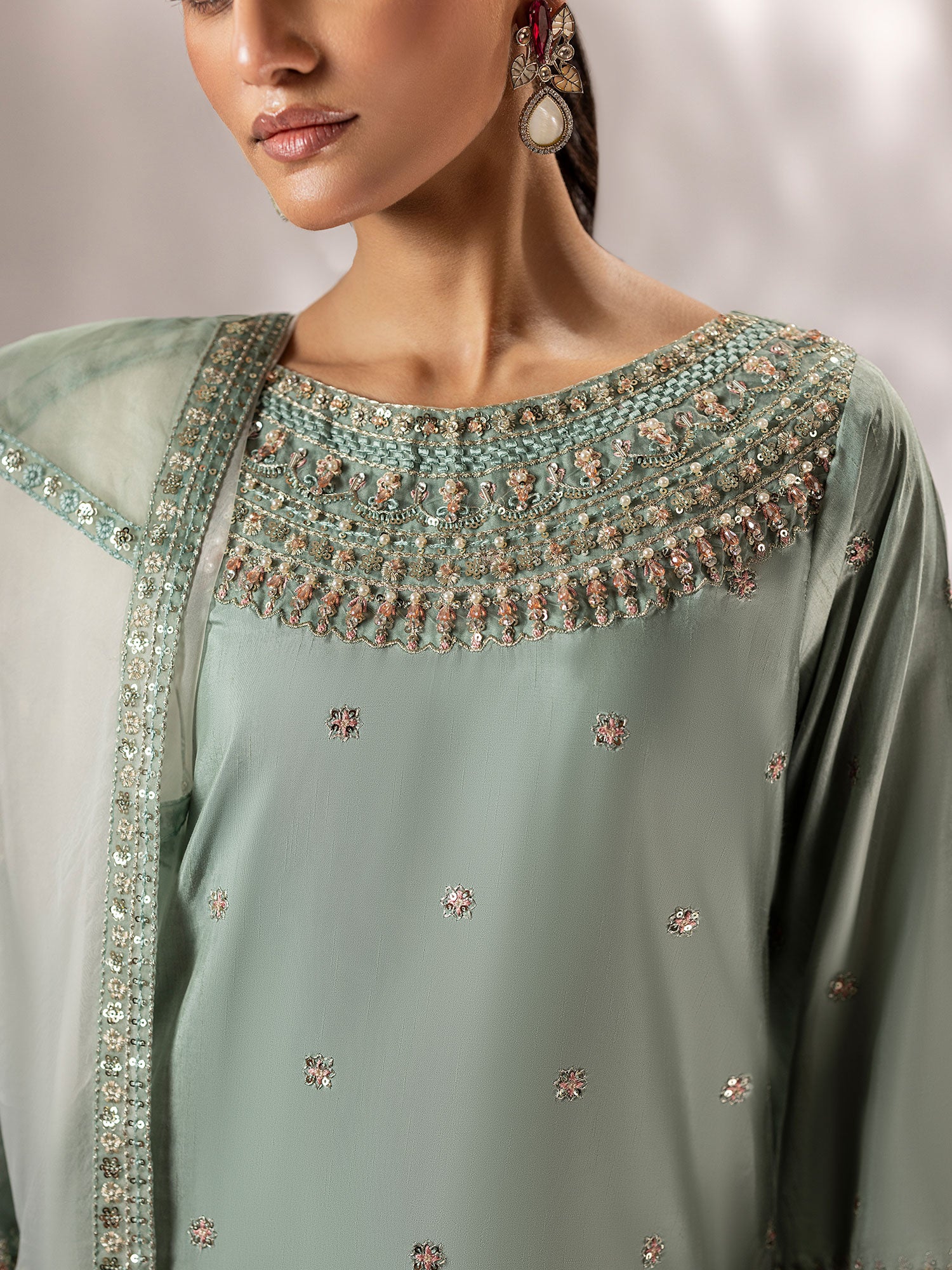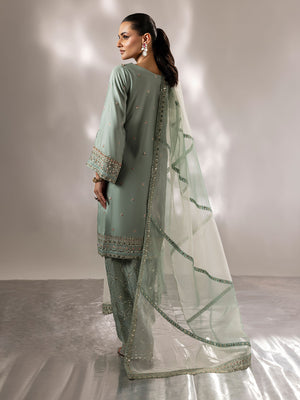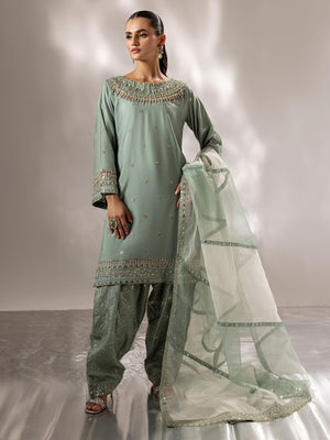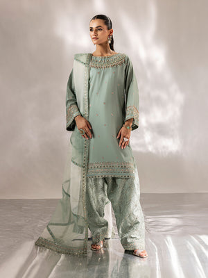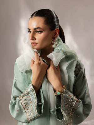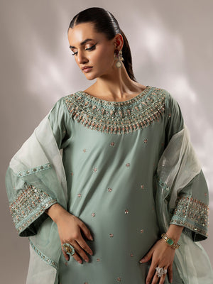 Zarqun Raw Silk 3-Piece Suit with Farshi Shalwar - Aqua Green (2527C)