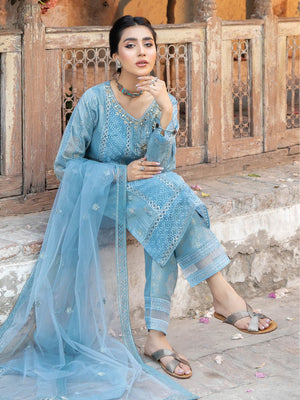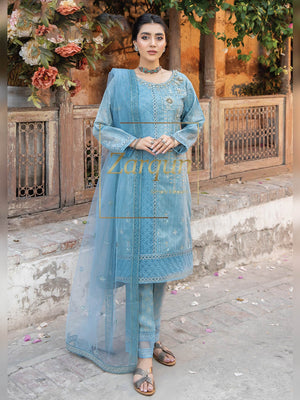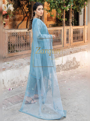 Zarqun "Virsa" Blue Fancy Embellished Net Suit (2314A)