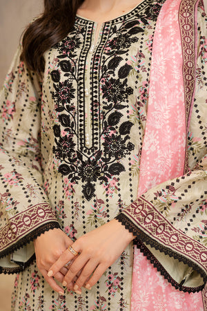 Zellbury Unstitched Embroidered Lawn 2-Piece Suit - Light Beige